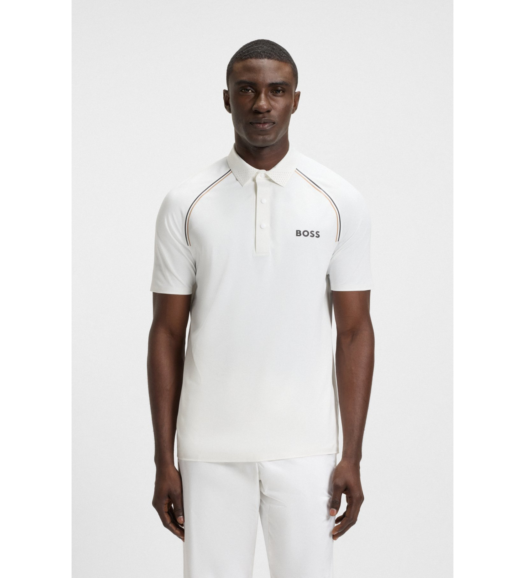 This quick-drying BOSS Menswear polo shirt, decorated with stripes and branded details, offers reliable moisture management. Slim fit. With perforated detail at the collar. Taped seams for comfort.