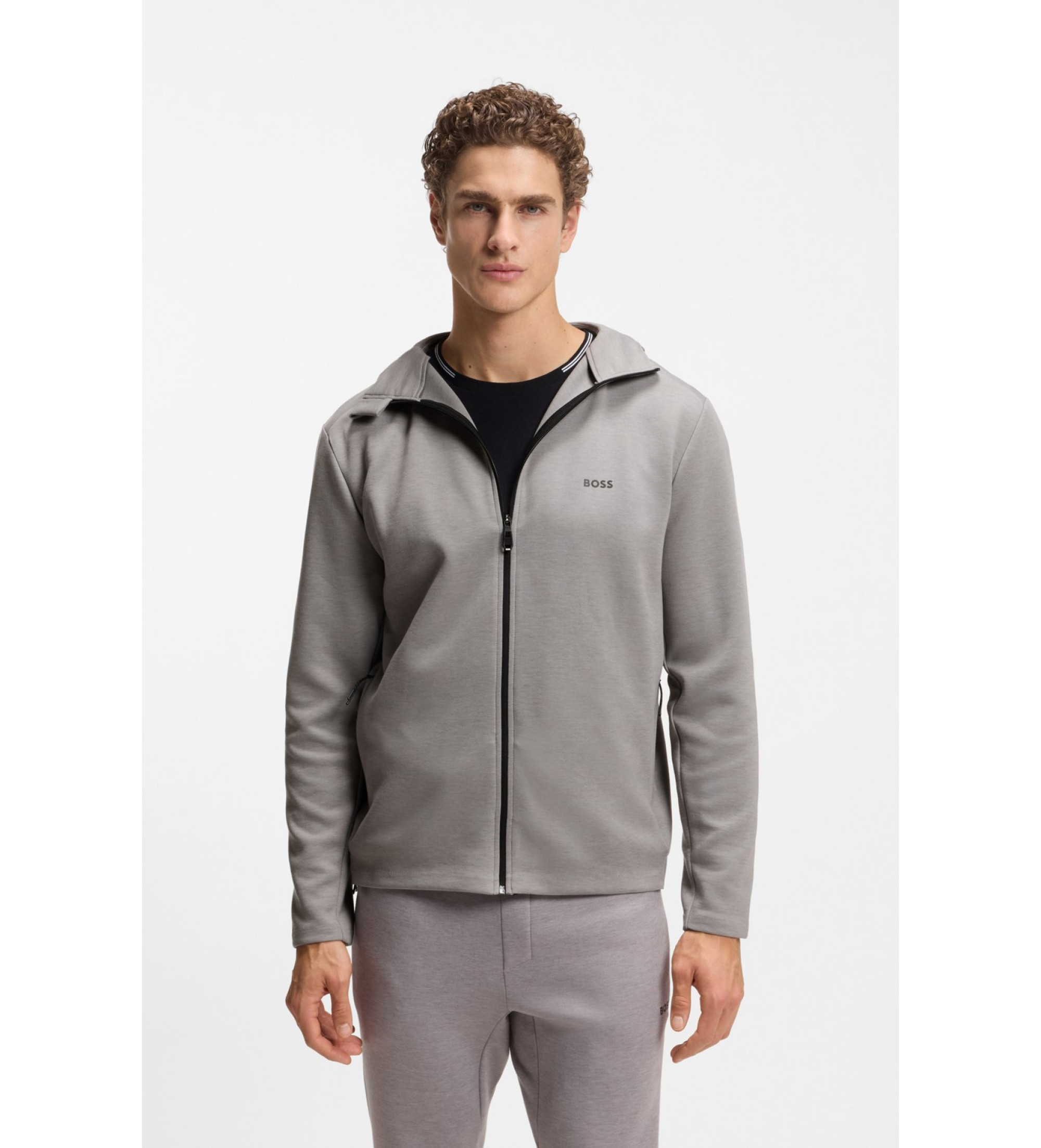Stay cool as you exercise in this BOSS Menswear jacket with advanced odour control. Lightweight and comfortable. Adjustable hood for wind protection. Decorative reflective details.