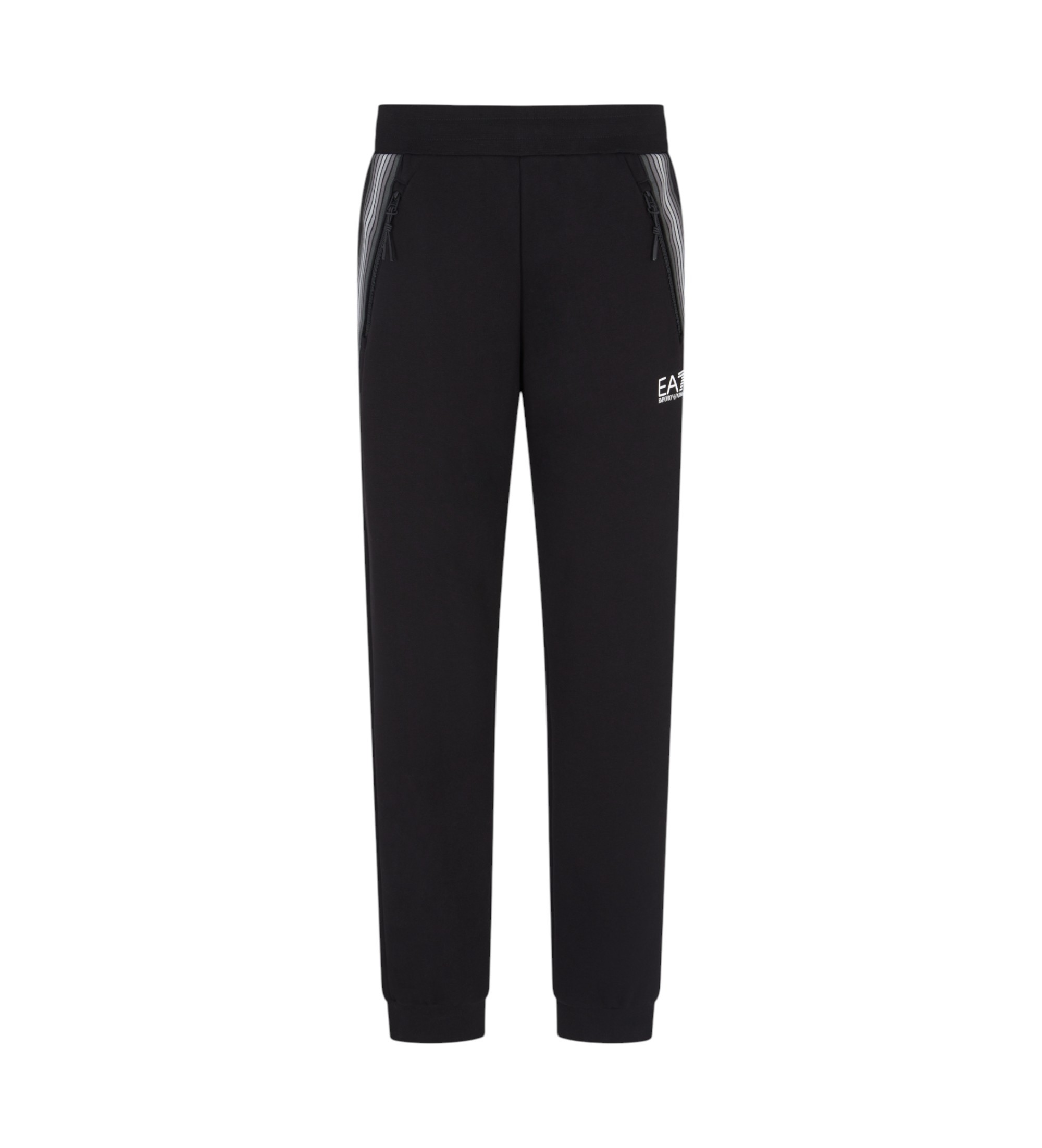 Tracksuit bottoms in recycled cotton blend. Part of the 7 Lines range, the model features the EA7 logo detail on the side and the seven lines motif tape along the sides of the pockets. A versatile piece that can be combined with the collection's sweatshirts to create a look with unmistakable style. The number 7, which graphically represents the world of sport and its values, is represented by a motif of lines in this proposal of the eponymous 7 Lines. A young and trendy style selection with a strong 90s inspiration, characterised by relaxed cuts and bright, versatile colours.