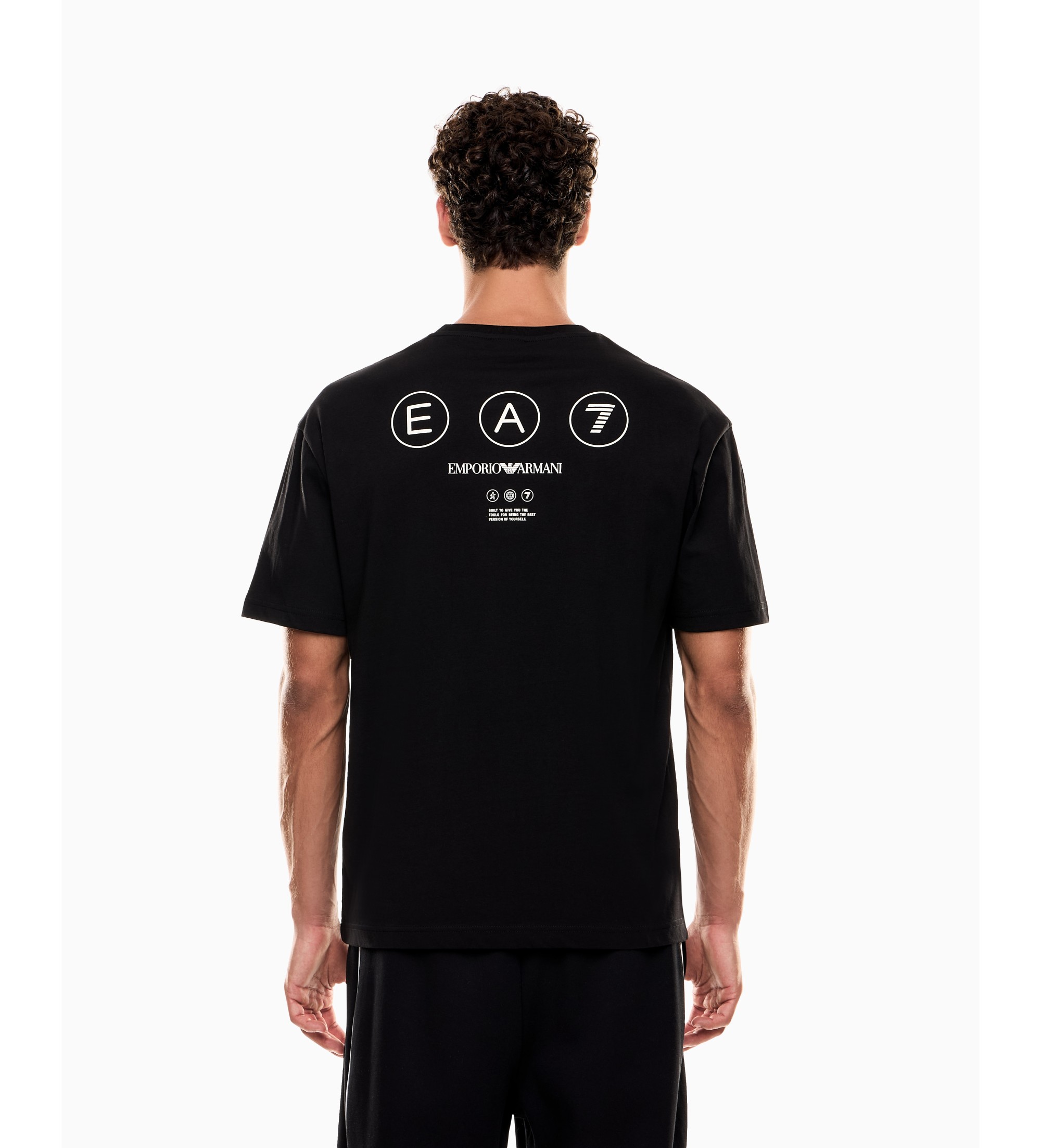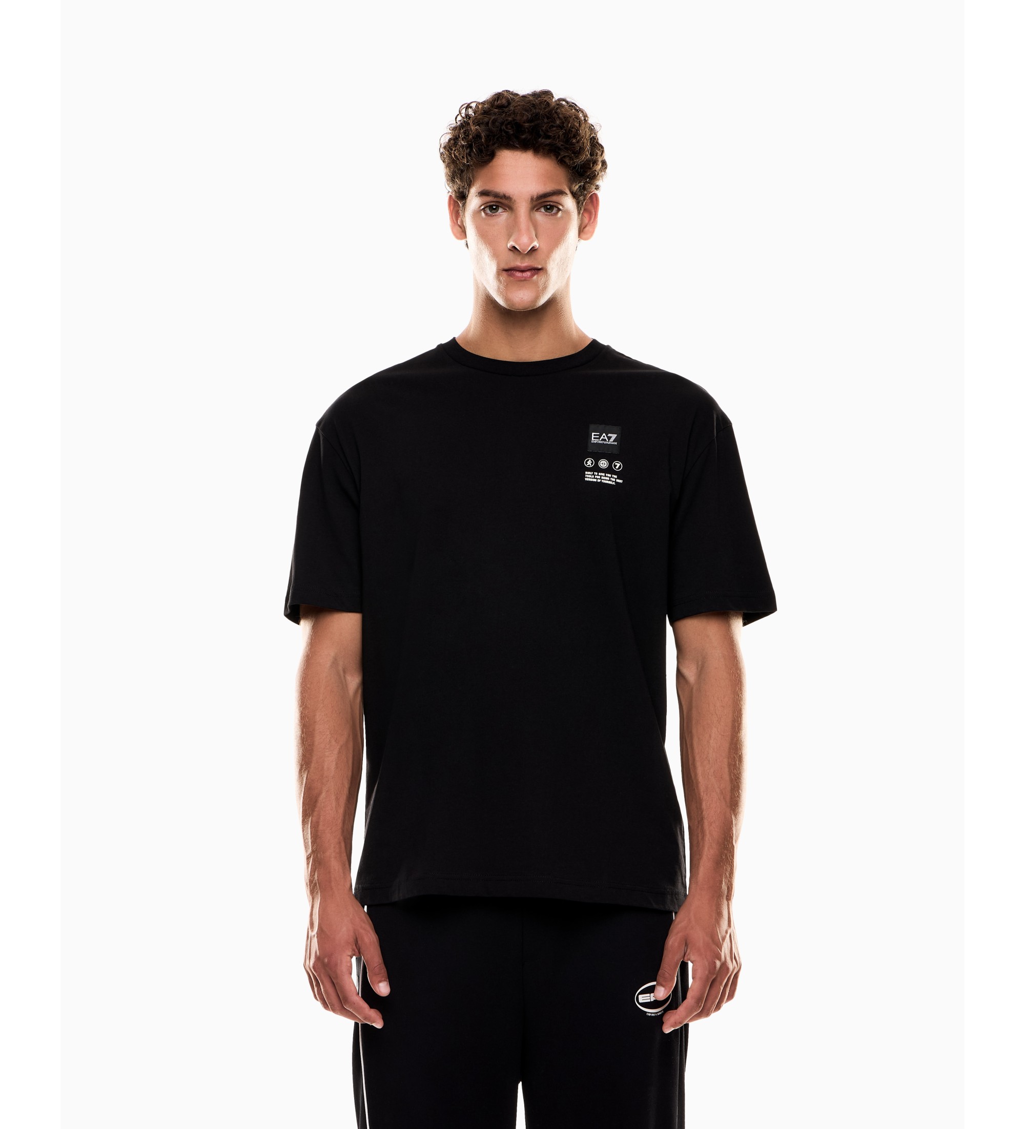 Round-neck T-shirt in cotton jersey, featuring a new modern, loose and comfortable cut, embellished with a contrasting print on the back and a chest patch. The EA7 logo is the real protagonist of the Logo Series proposal, which this season is versatile in its interpretation, alternating tone-on-tone, retro motifs and mini formats. Comfortable and versatile garments, perfect for leisure and relaxation.