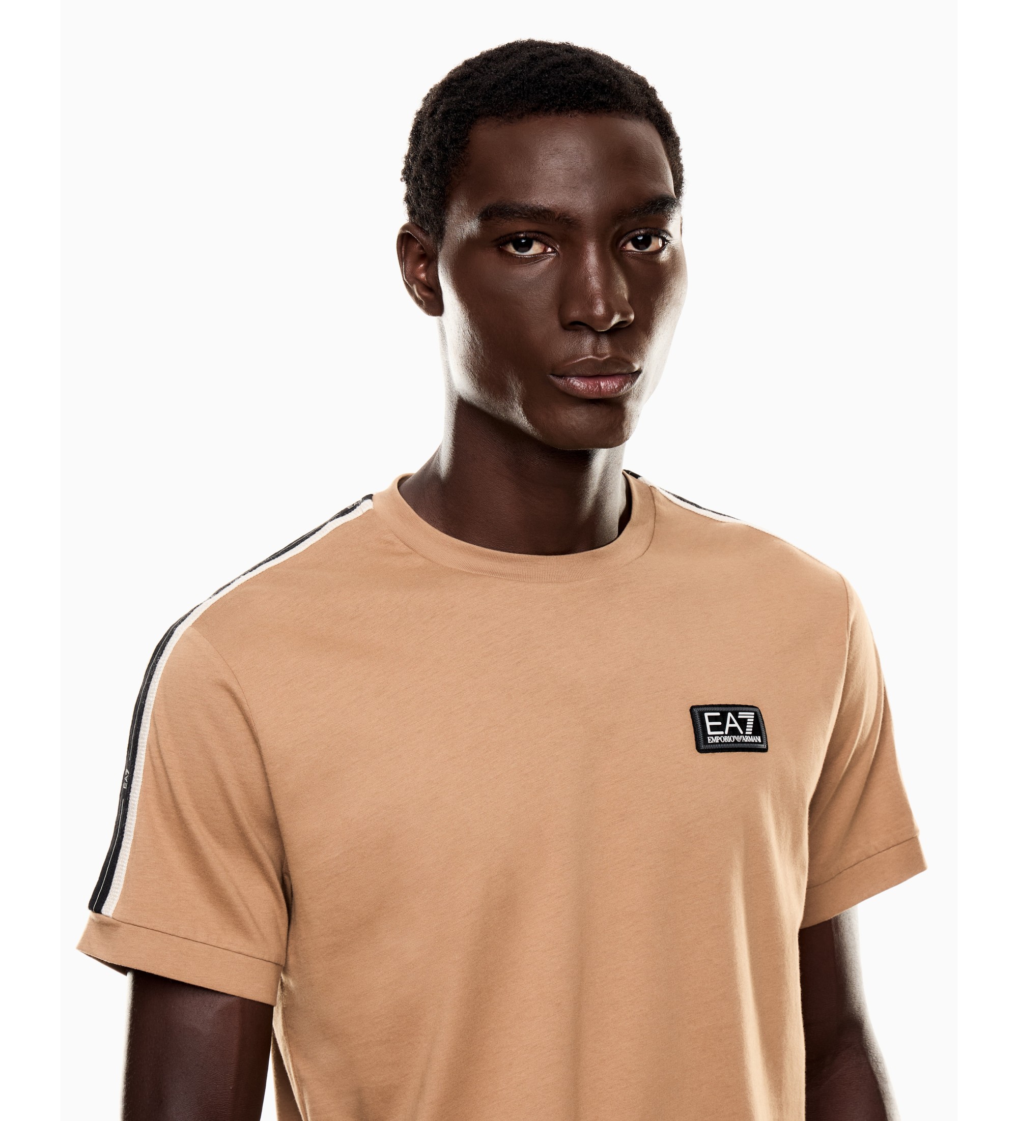 Regular fit crew neck T-shirt in soft cotton jersey. This model is personalised by the logo tape detail on the shoulders and the EA7 logo on the chest, a reference to other creations in the Logo Series line. The EA7 logo is the real star of the Logo Series, which this season is versatile in its interpretation, alternating tone-on-tone, retro motifs and mini formats. Comfortable and versatile garments, perfect for moments of leisure and relaxation.