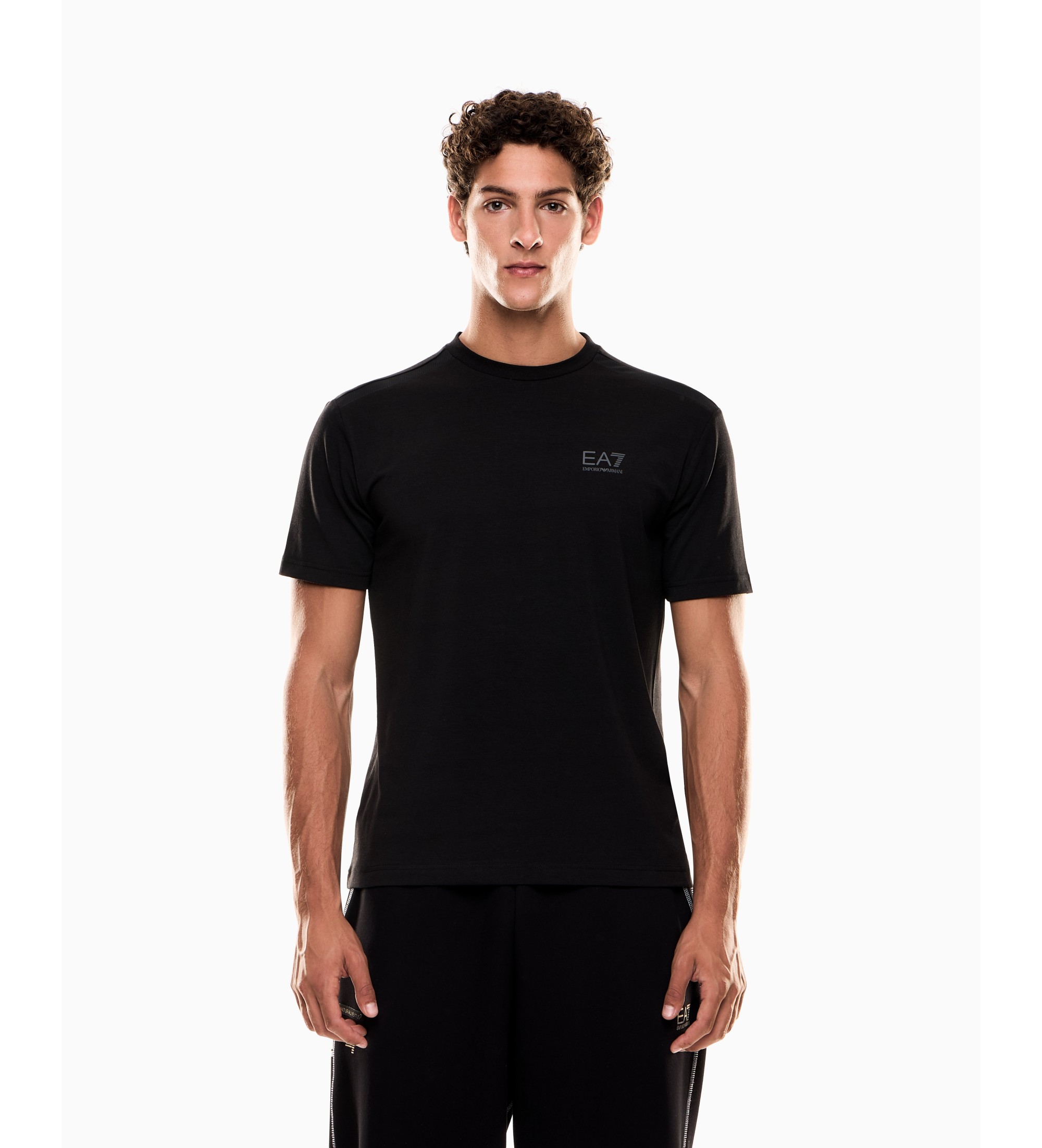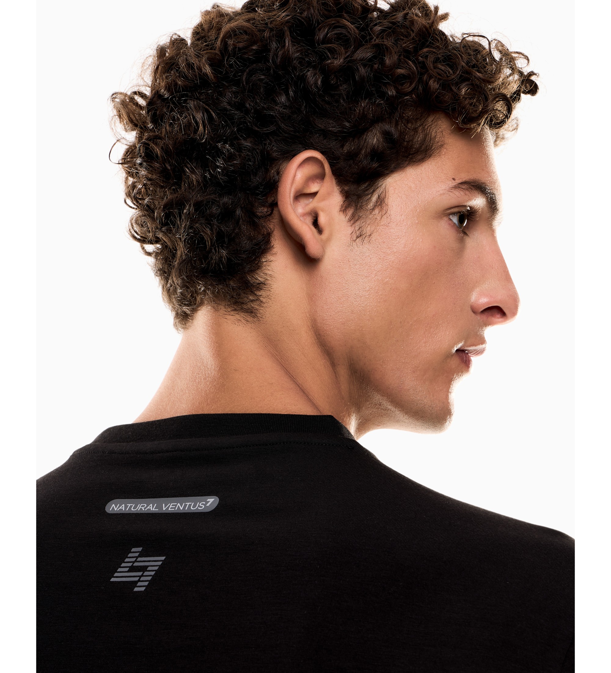 T-shirt with short sleeves and round neck, made of Natural VENTUS7 technical fabric. An innovative technology featuring a blend of natural and synthetic fibres that regulates body temperature, expelling sweat as water vapour while leaving a comfortable and soft feeling on the skin, thanks to the cotton fibres in its composition. Ideal for your outdoor workouts, the model is embellished with a contrasting EA7 logo on the chest.