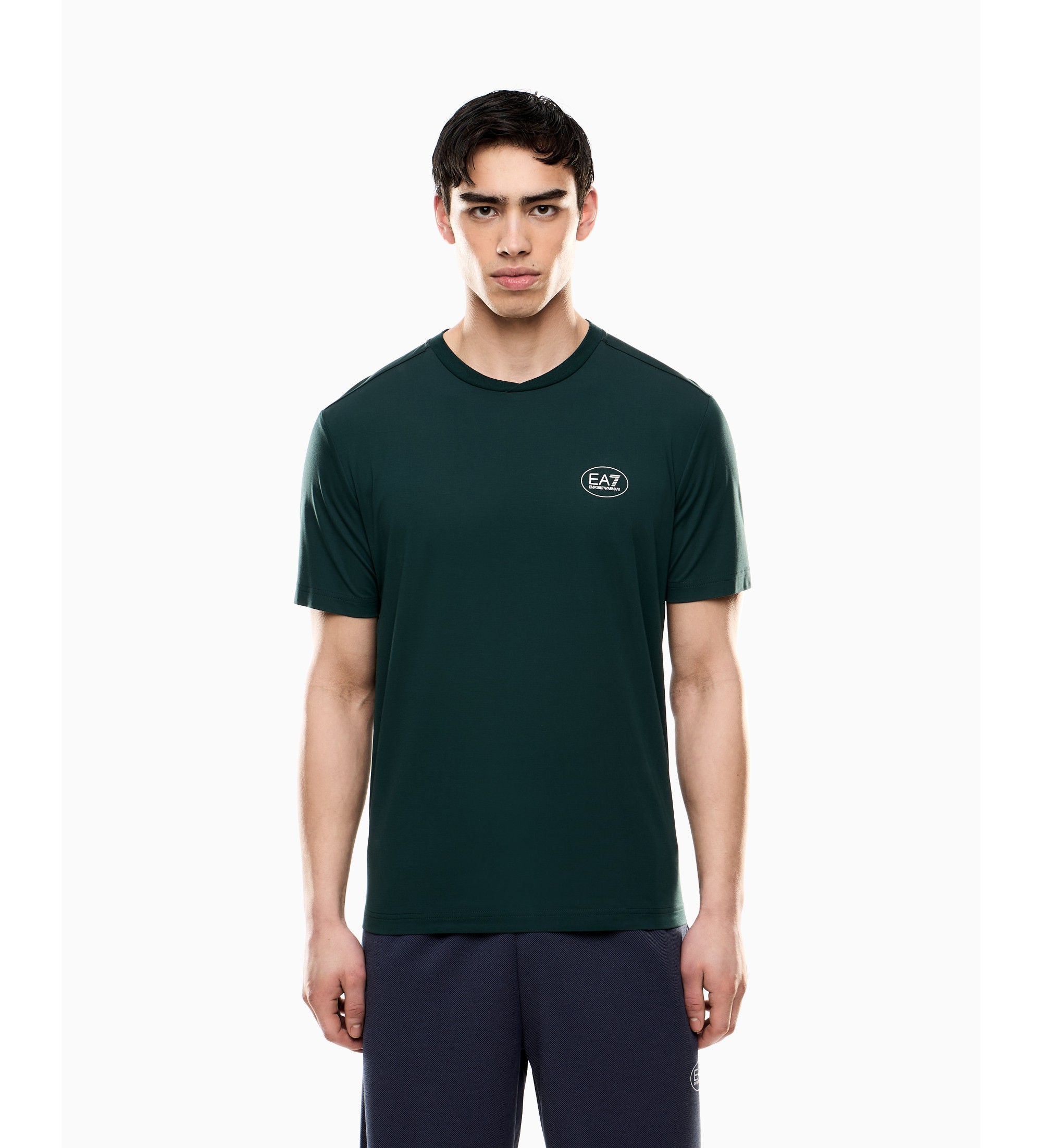 Close-fitting crew neck T-shirt in viscose blend knit. The short sleeve model, personalised with EA7 logo on the chest, is part of the Tennis Club line: exquisite fabrics, elegant colours and essential lines with sophisticated details in garments designed for leisure time at the club. A winning proposition, perfectly matched with the match and training models, designed to live the spirit of tennis to the fullest.
