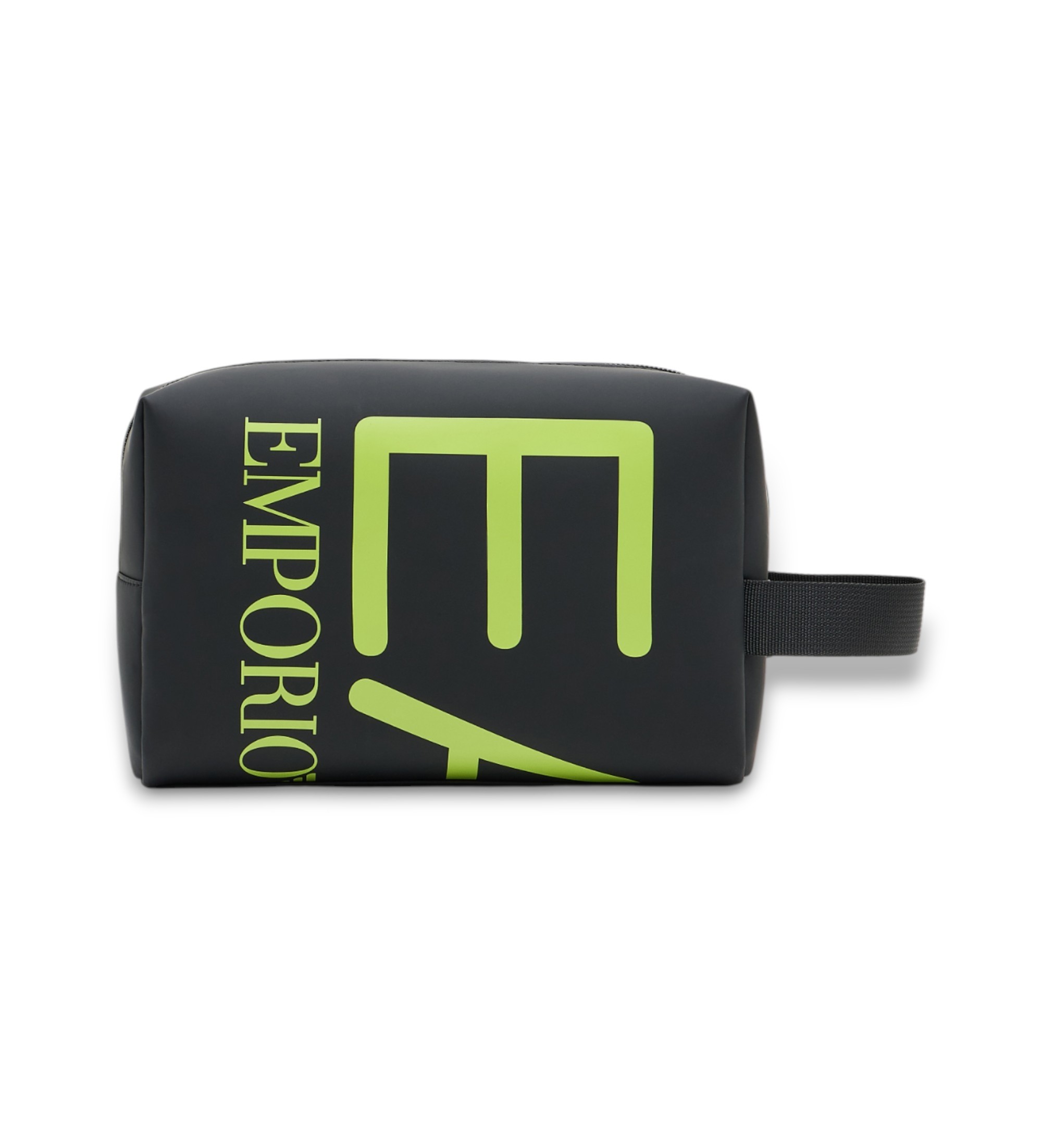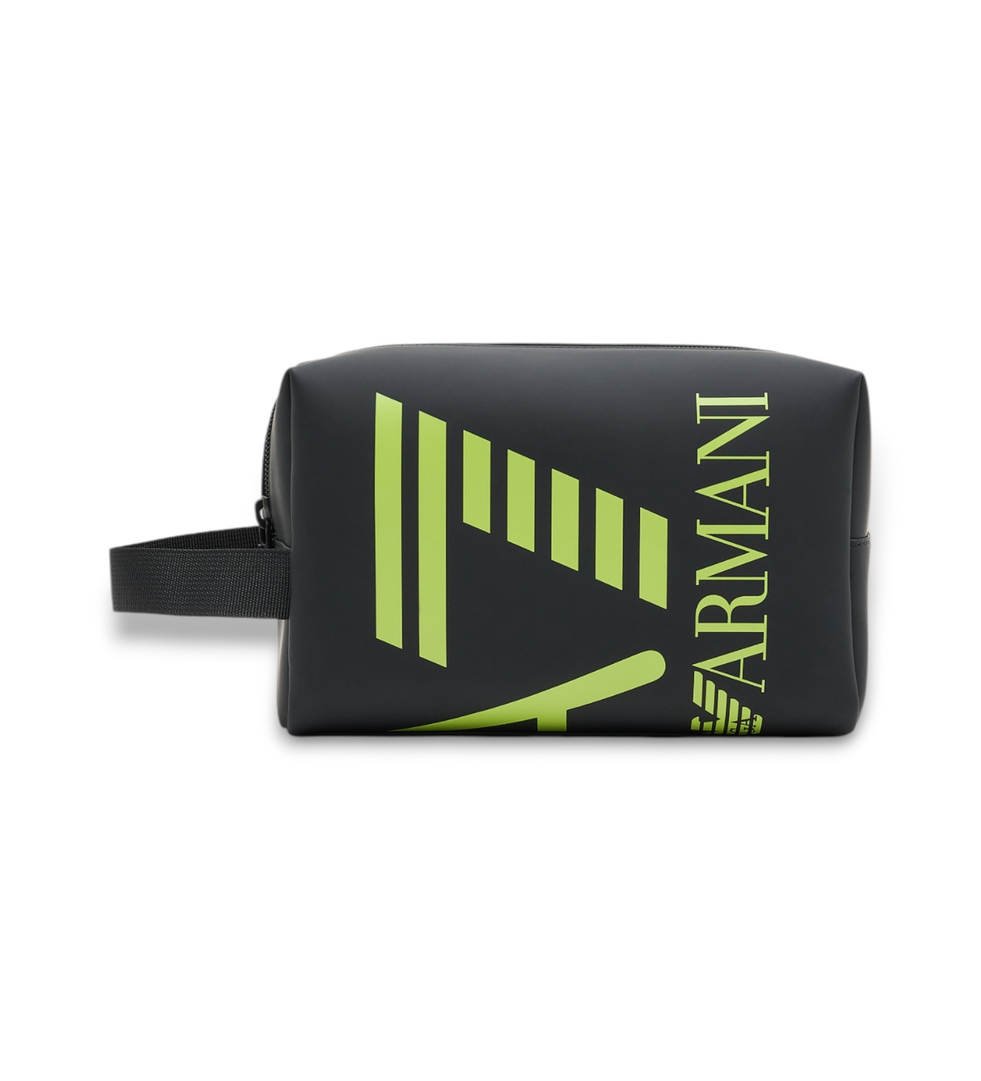 Toilet bag made of rubberised fabric, with a large logo in contrasting colour that adds style and personality. Lightweight and functional, perfect for keeping your items organised on a daily basis or on your travels.