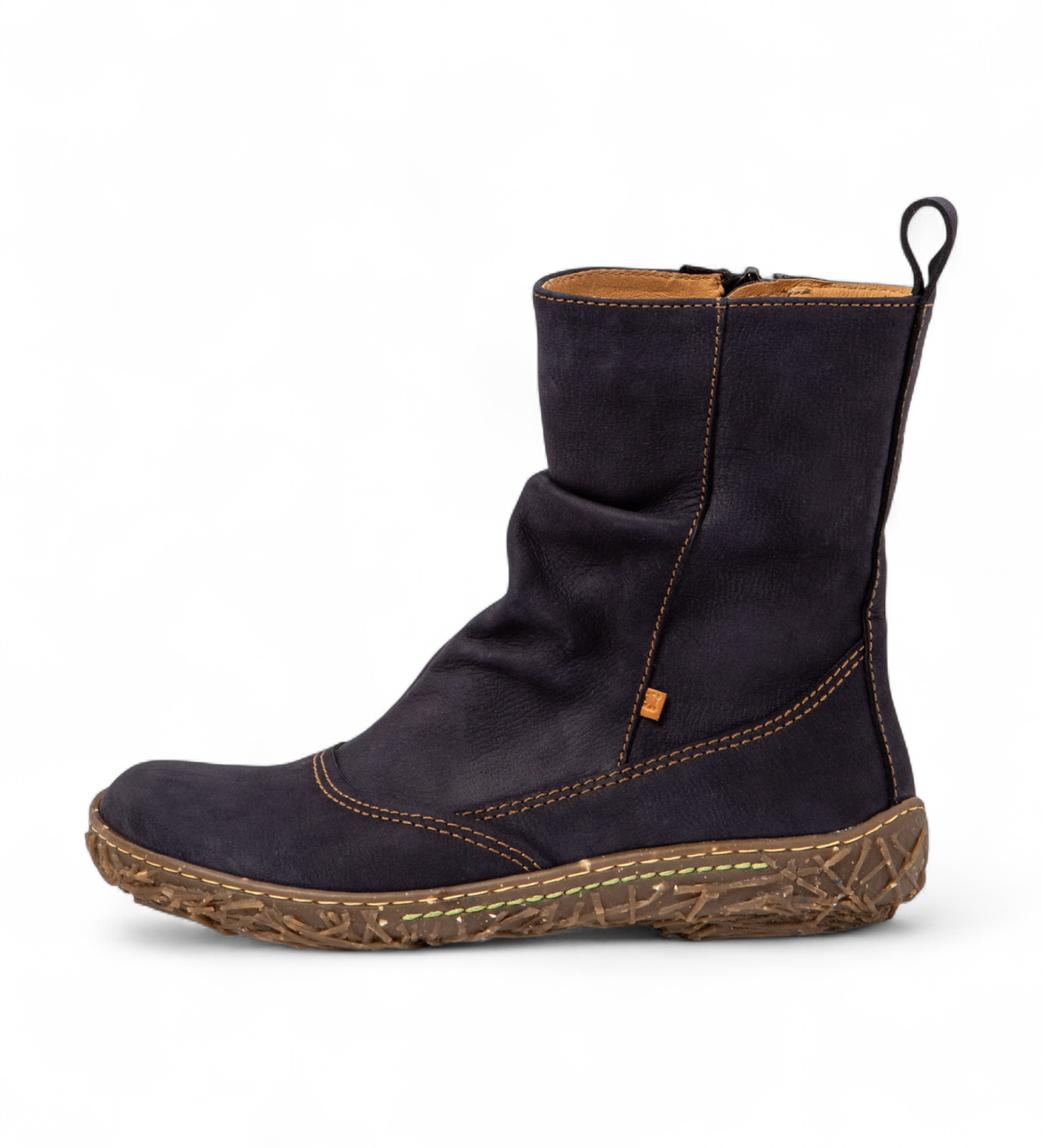 Immerse yourself in the comfort and unique design of the N722 Pleasant Wood ankle boots in tan, inspired by the idea of home and stability provided by a stork's nest. These women's ankle boots feature a 360° stitched construction, and their bovine leather upper ensures durability and style. Fitted with a recycled zip fastening, they feature a chrome-free interior with an 80% polyester and 20% leather lining, ensuring comfort with every step. The recycled rubber sole and removable microfibre insole reaffirm their commitment to sustainability, while the comfort last provides a perfect fit. A classic shoe for those looking to go home in style and comfort.