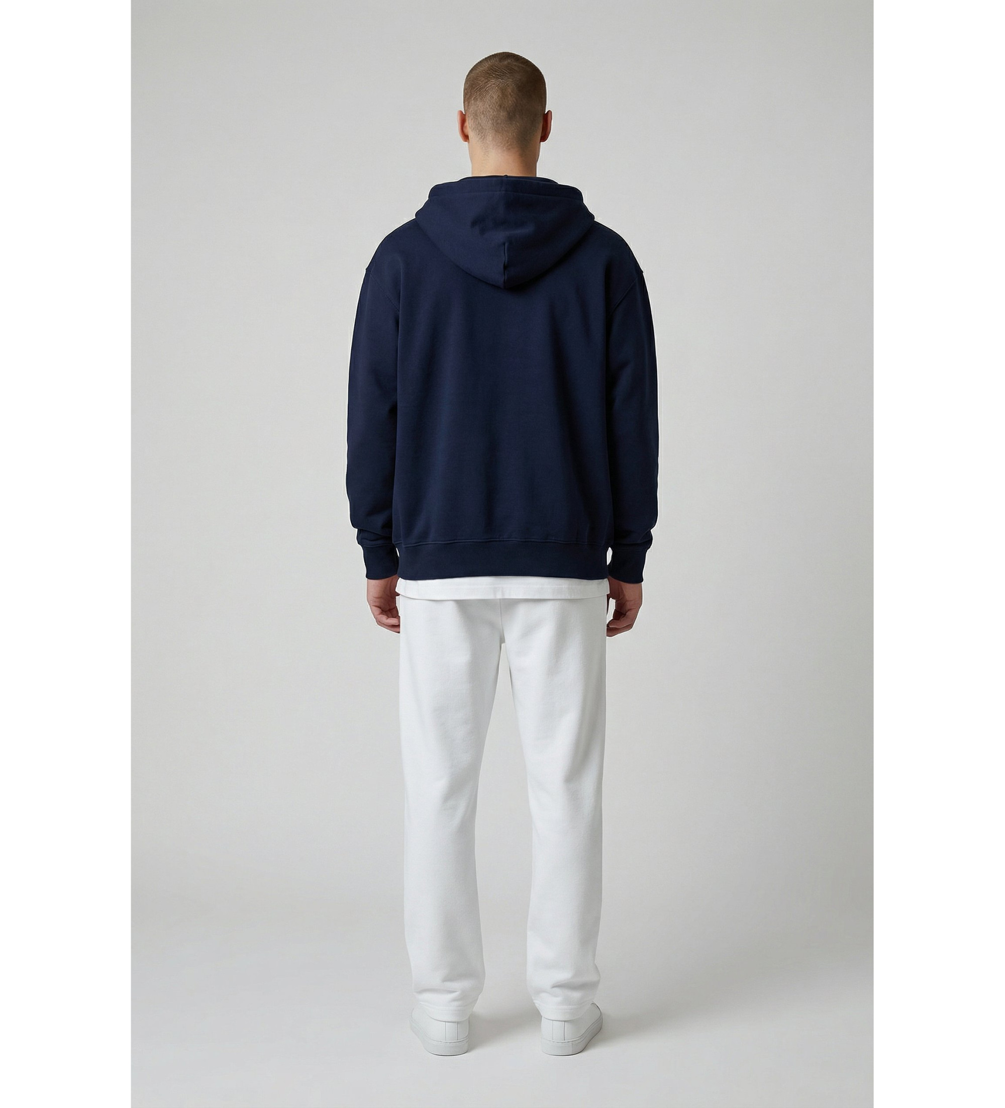 Navy blue full zip hooded sweatshirt from Family First. An urban streetwear classic executed with the brand's signature quality and detail, perfect for everyday wear when you're looking for comfort and style in one.