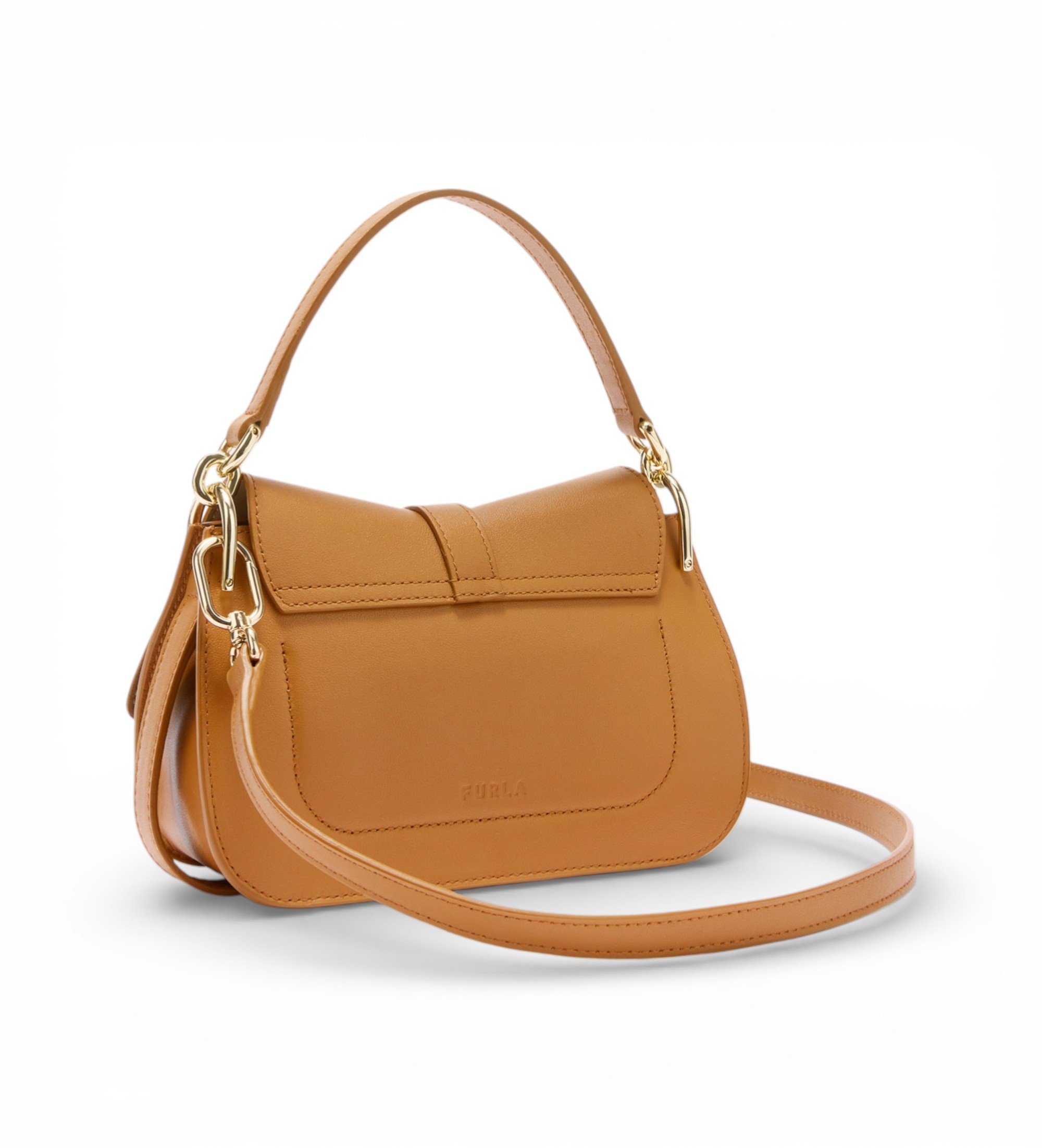 The sleek curves of the Furla Flow mini bag, combined with the iconic decorative Arco buckle on the front, give it a contemporary edge that makes it stand out. Ideally sized to hold your essentials, it is crafted from soft nappa leather and can be carried in the hand, over the shoulder or across the body.