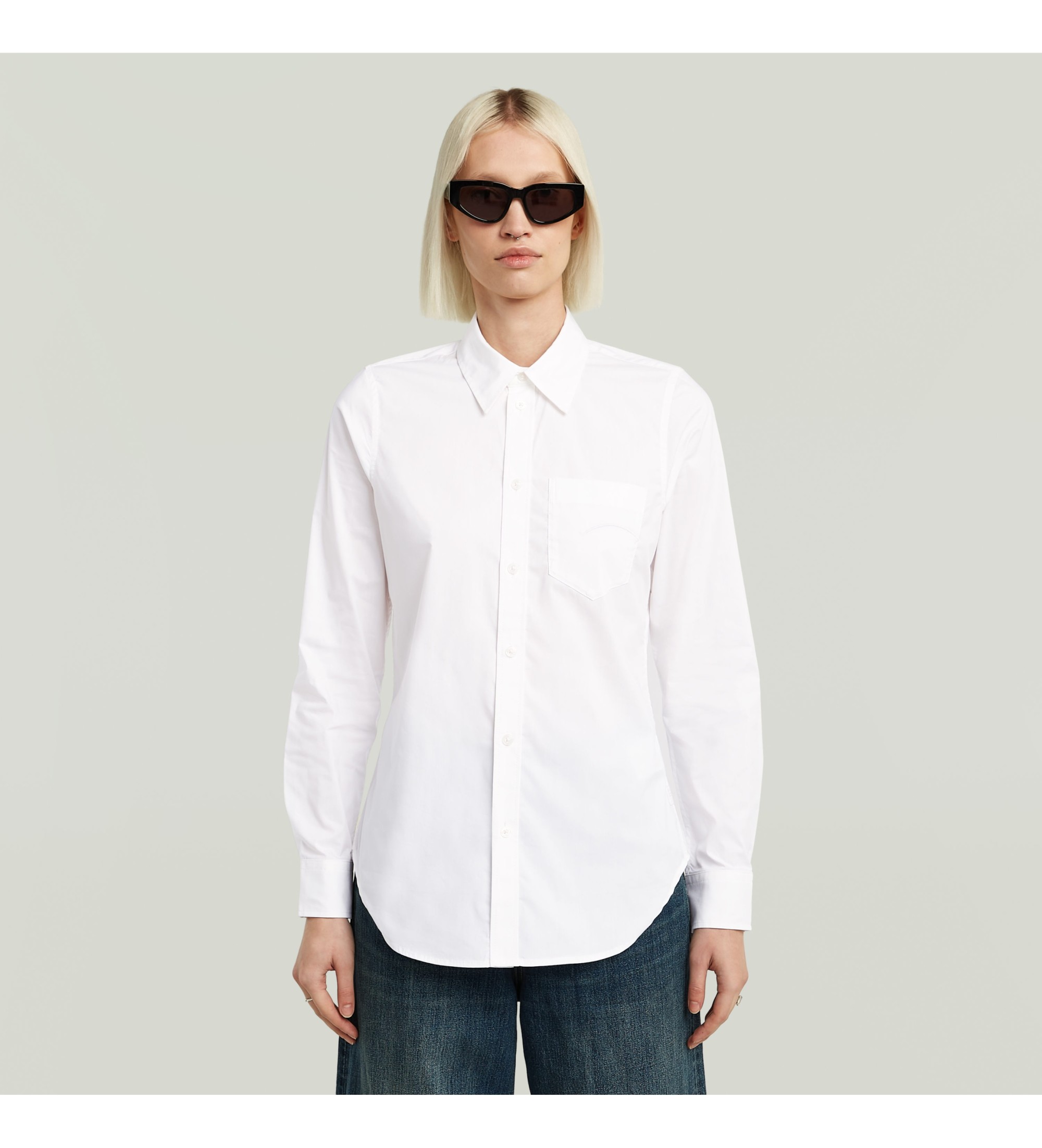 The Slim Poplin shirt is long sleeved, with a button fastening and a shirt collar.