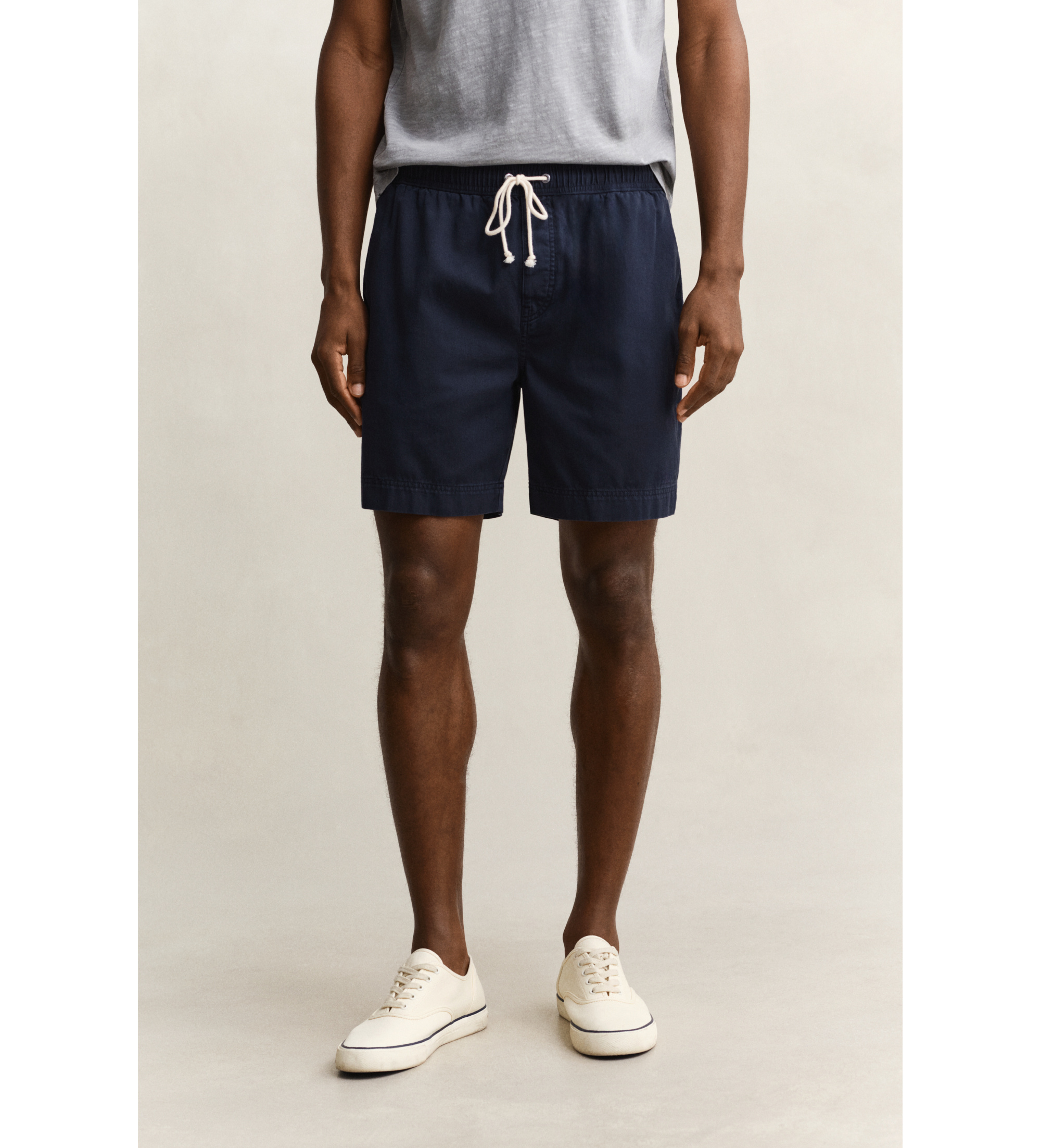 These shorts have been garment-washed with a special dye that creates a sun-faded, worn-in look. They are made from a fine stretch cotton-blend twill with a regular fit and a mid-rise waist. They are designed with an elasticated waistband with adjustable drawstring, side pockets, welt and button pockets at the back, synthetic horn buttons and a tonal Gant logo embroidered at the bottom left leg. A comfortable staple you'll want to wear all summer long.