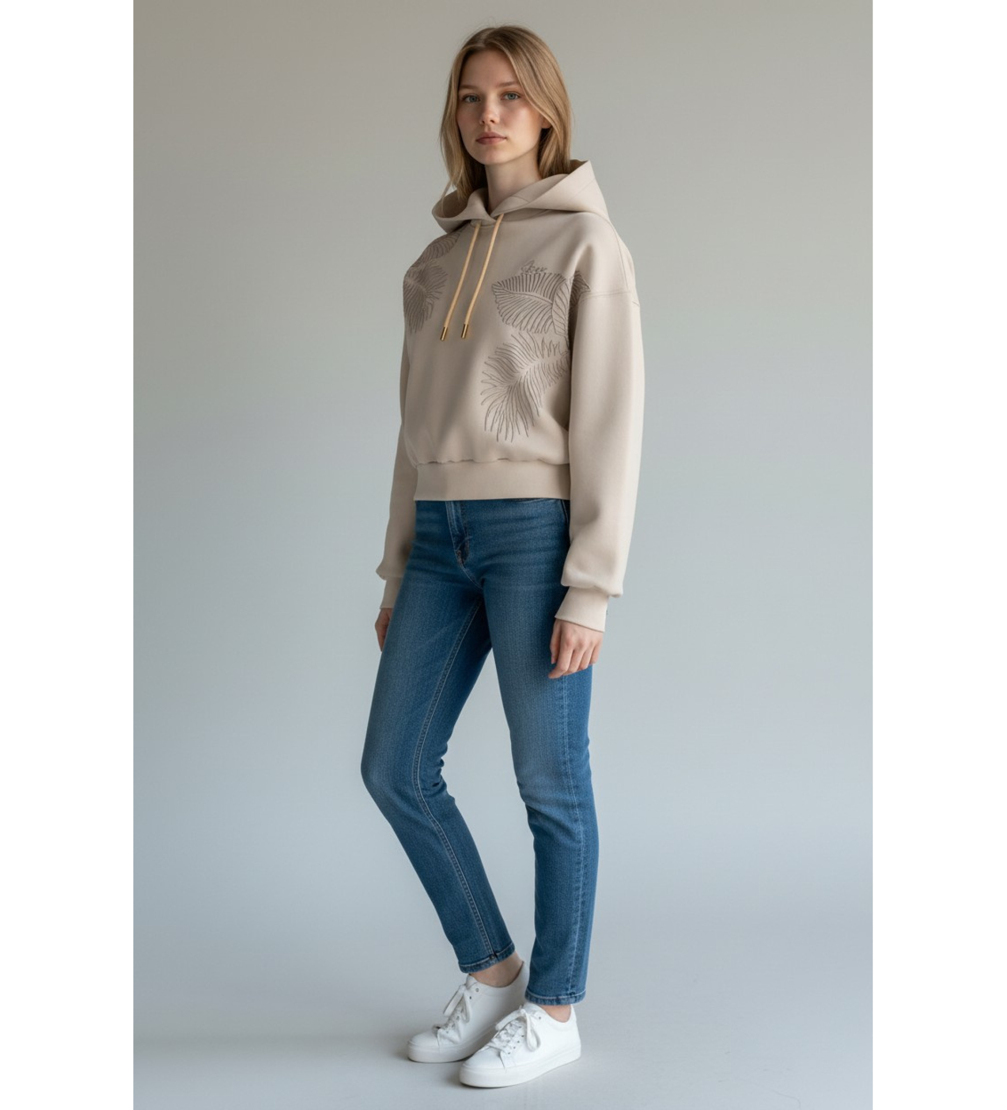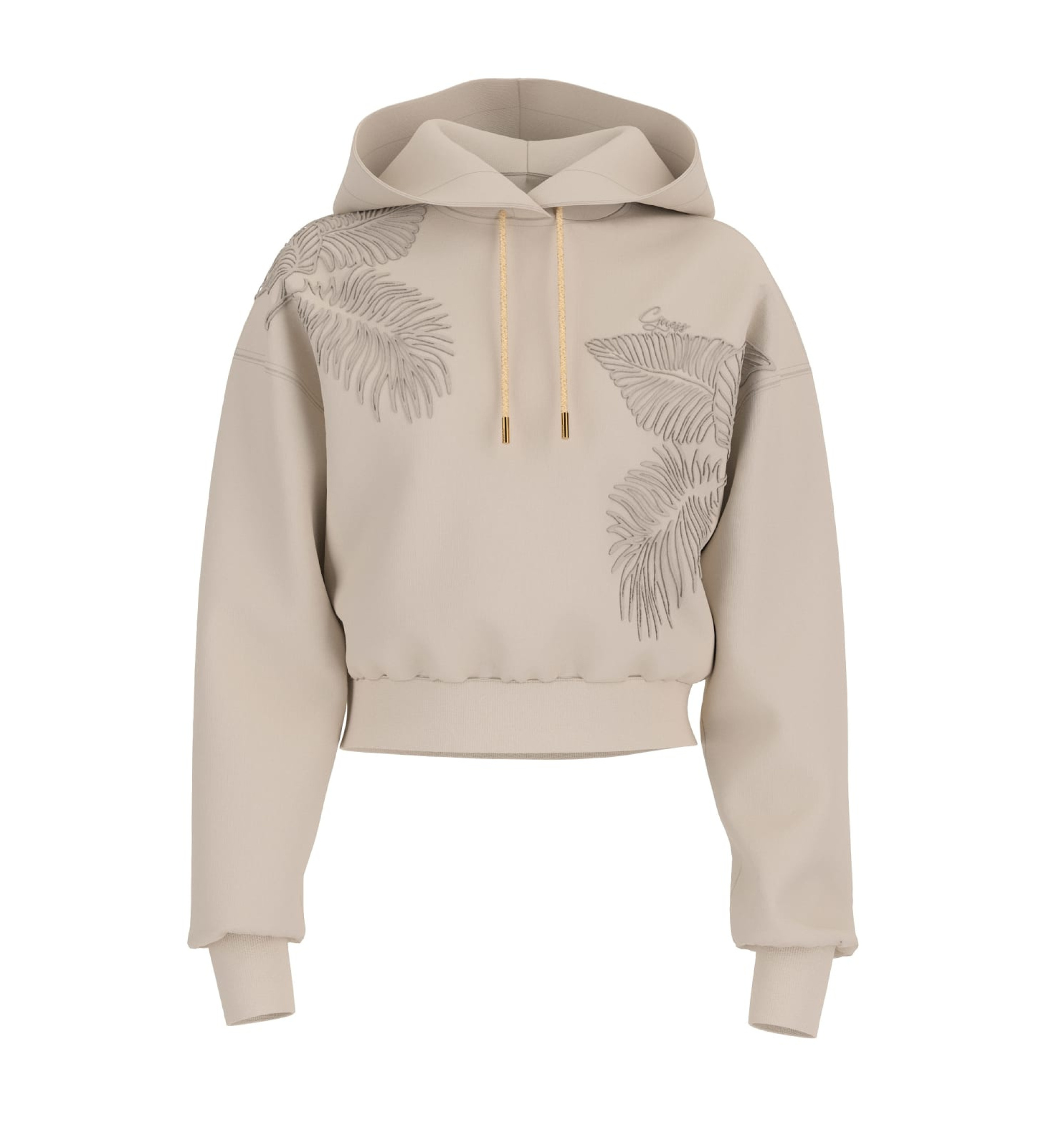 Guess elevates the casual sweatshirt with this cropped hoodie that fuses the comfort of technical fabric with sophisticated femininity. The large tropical leaf embroidery that runs down the front makes this piece more than just a warm-up piece: it's a style statement that transitions naturally from laid-back to polished.