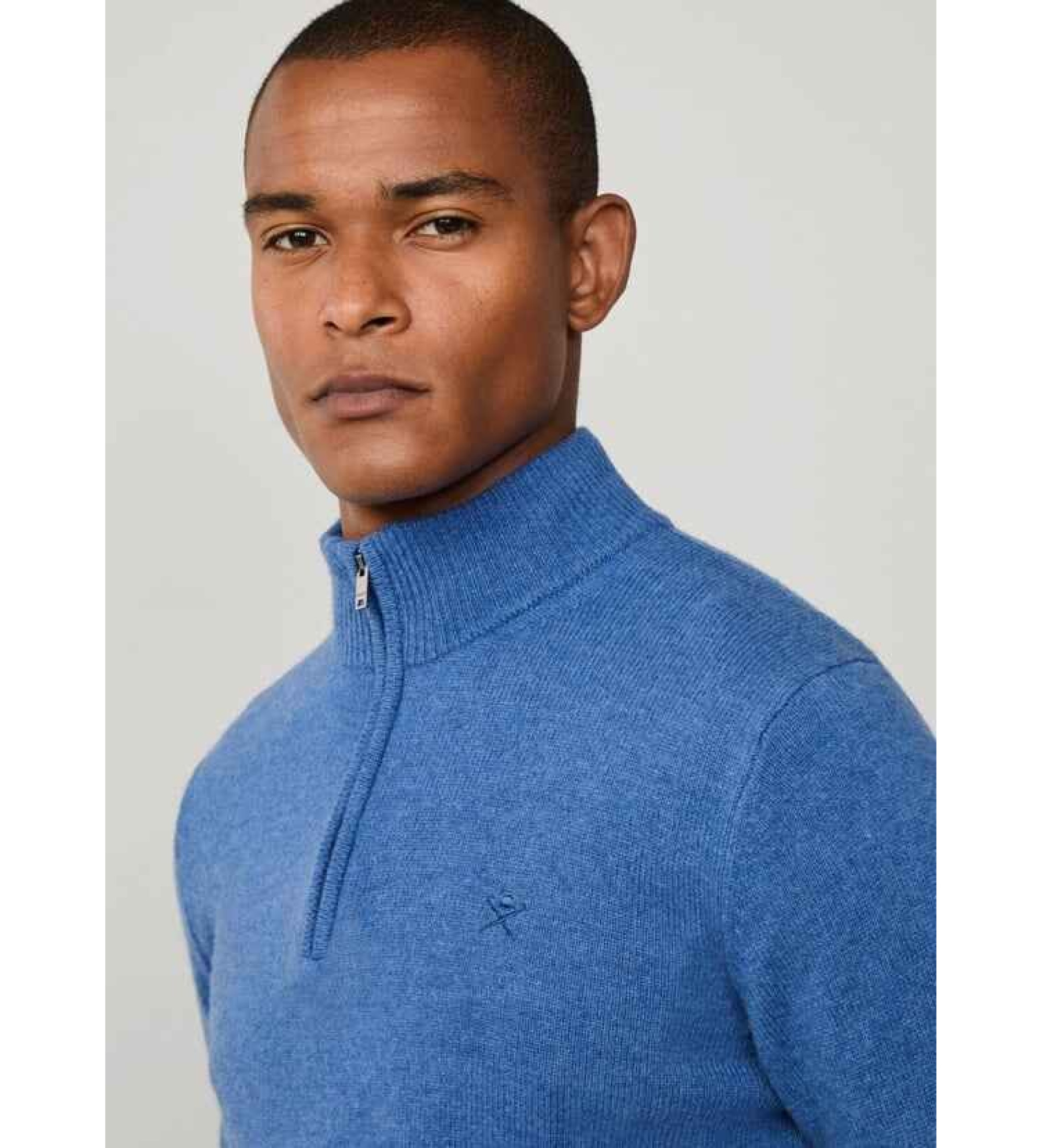 Part of Hackett London's essential collection. This half-zip lambswool jumper is knitted in a luxurious lambswool and features ribbed cuffs and hem with double ribbed trim to the collar, tonal embroidered logo to the chest and faux suede elbow patches.