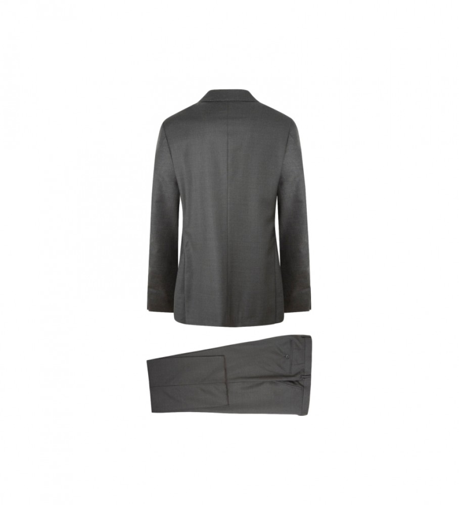 This elegant suit in a sharkskin wool fabric features a jacket with a single double-breasted button fastening and notch lapel. The trousers have a tailored cut with an unfinished hem for a tailored length.