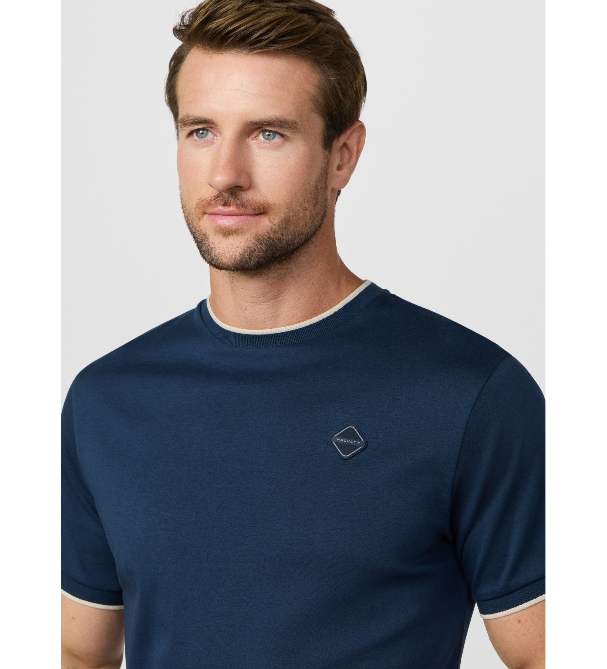 A classic fit Hackett Sport short sleeve T-shirt in high quality stretch cotton interlock with a soft, flowing finish. A comfortable, modern design with distinctive detailing for sporty style.