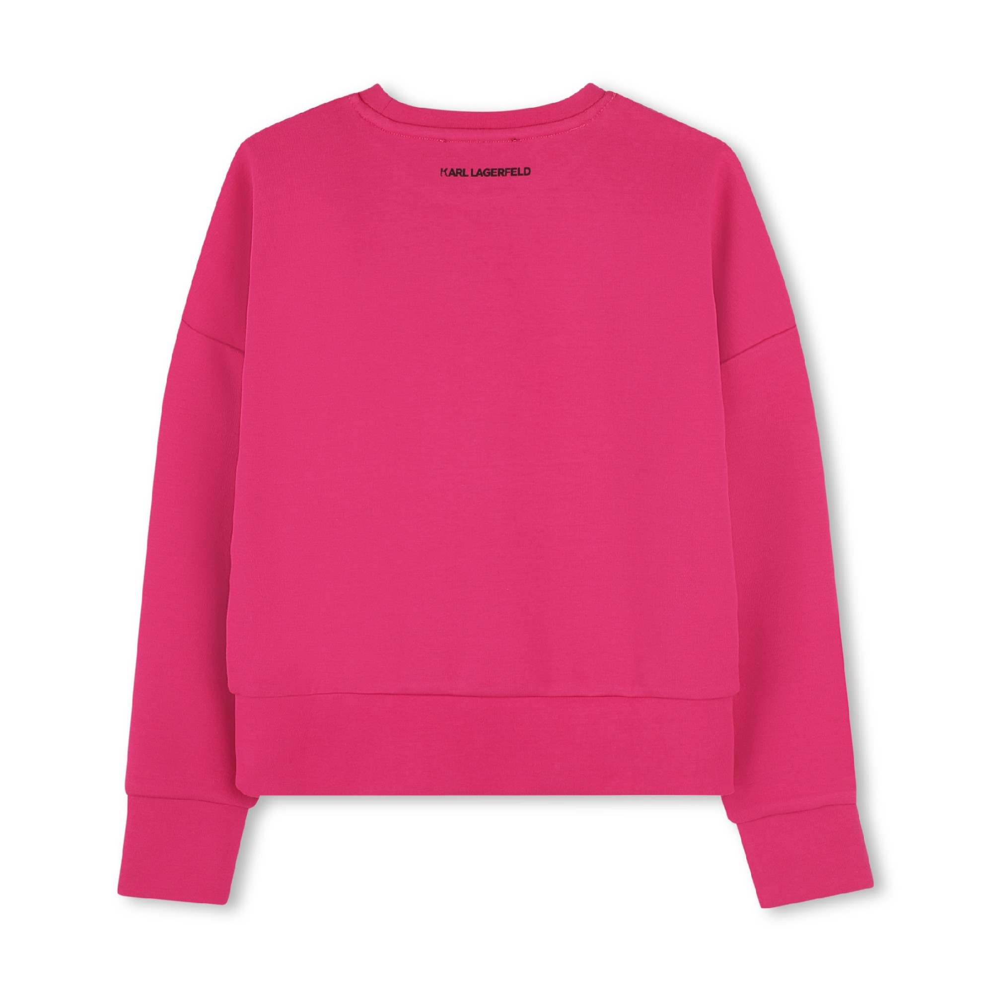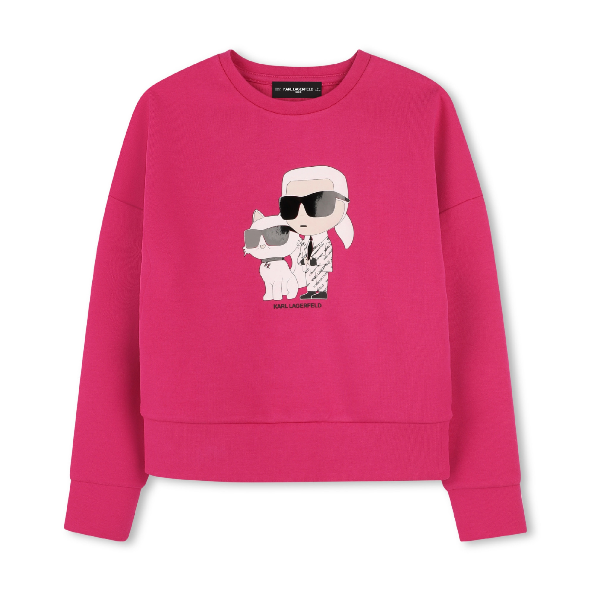 Long sleeve double knit sweatshirt (45% cotton, 50% polyester, 5% elastane). KARL and CHOUPETTE illustration on the front and KARL LAGERFELD illustration on the back.