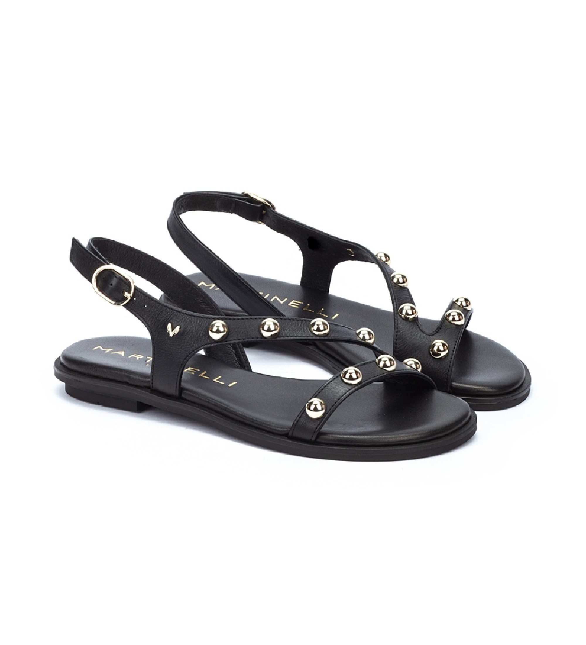 Martinelli MAZZINI FLAT LEATHER SANDALS WITH STUDS BLACK