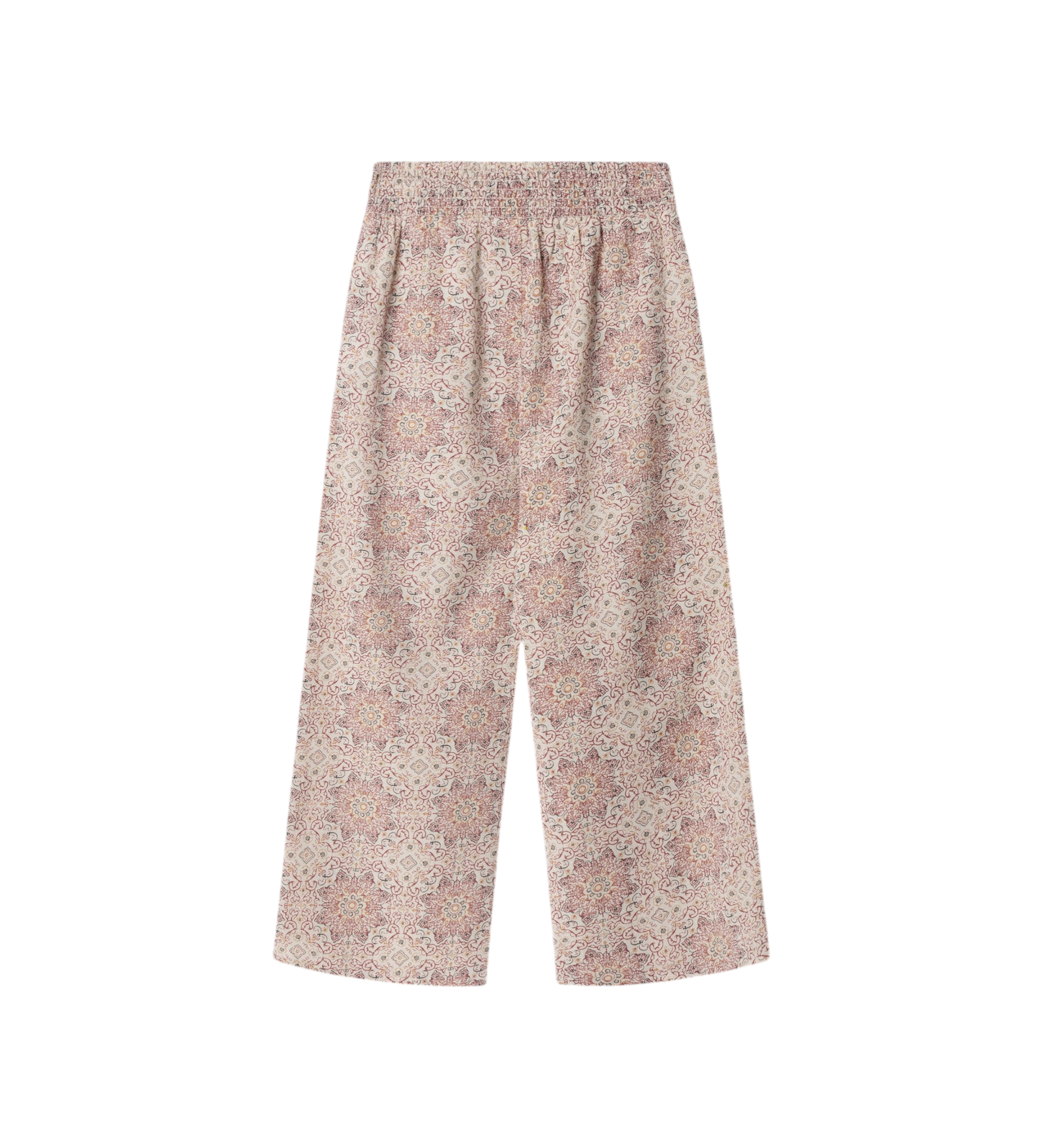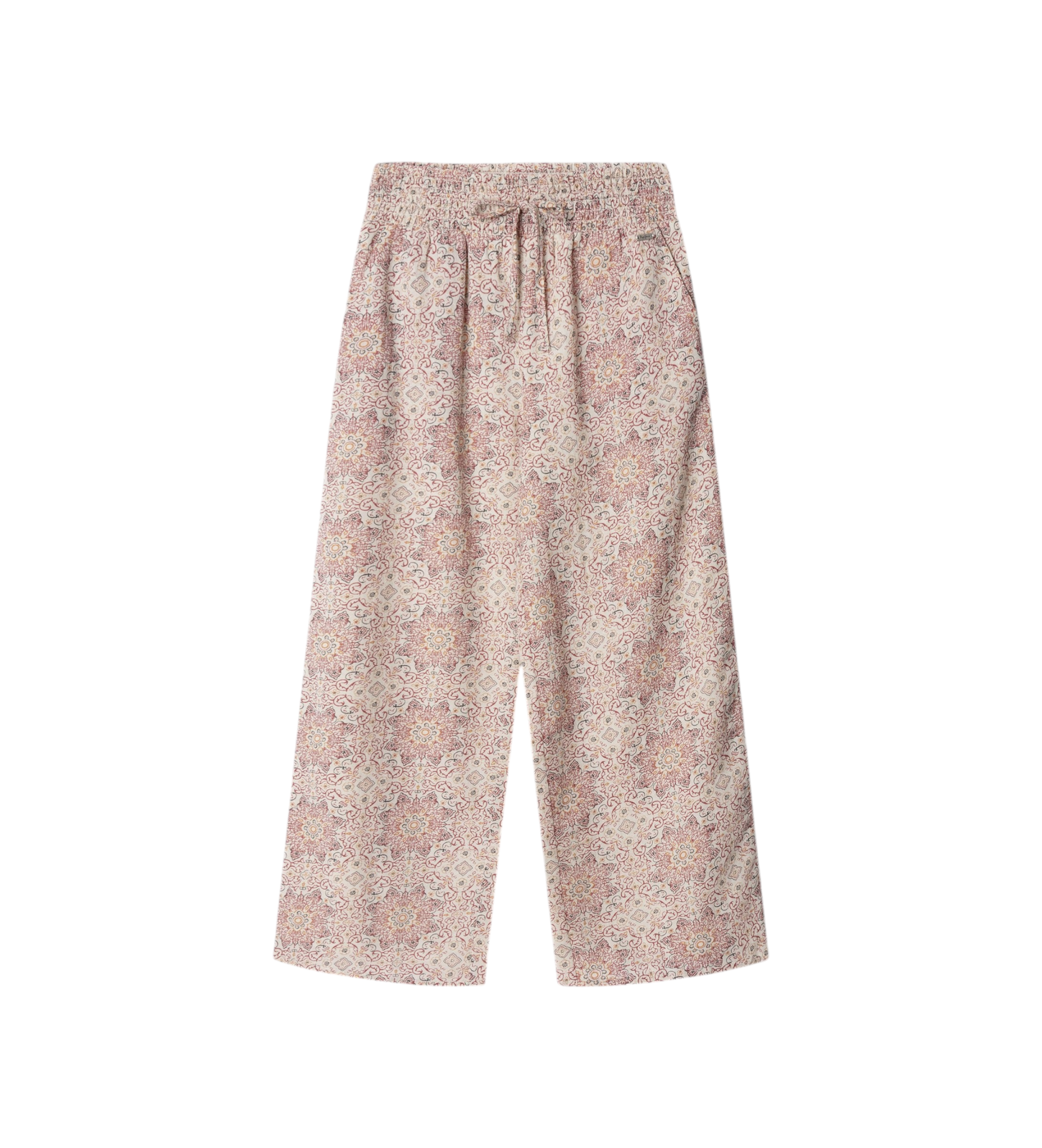 A comfortable and elegant design that combines bohemian style with contemporary versatility, these straight-cut trousers in a printed fluid fabric are a comfortable and elegant addition to your wardrobe. The gathered panel at the waist with adjustable drawstrings provides a flattering, tailored fit, while the lightweight fabric and straight silhouette create a streamlined visual effect that's full of movement. Perfect for everyday, holiday or casual looks with personality.