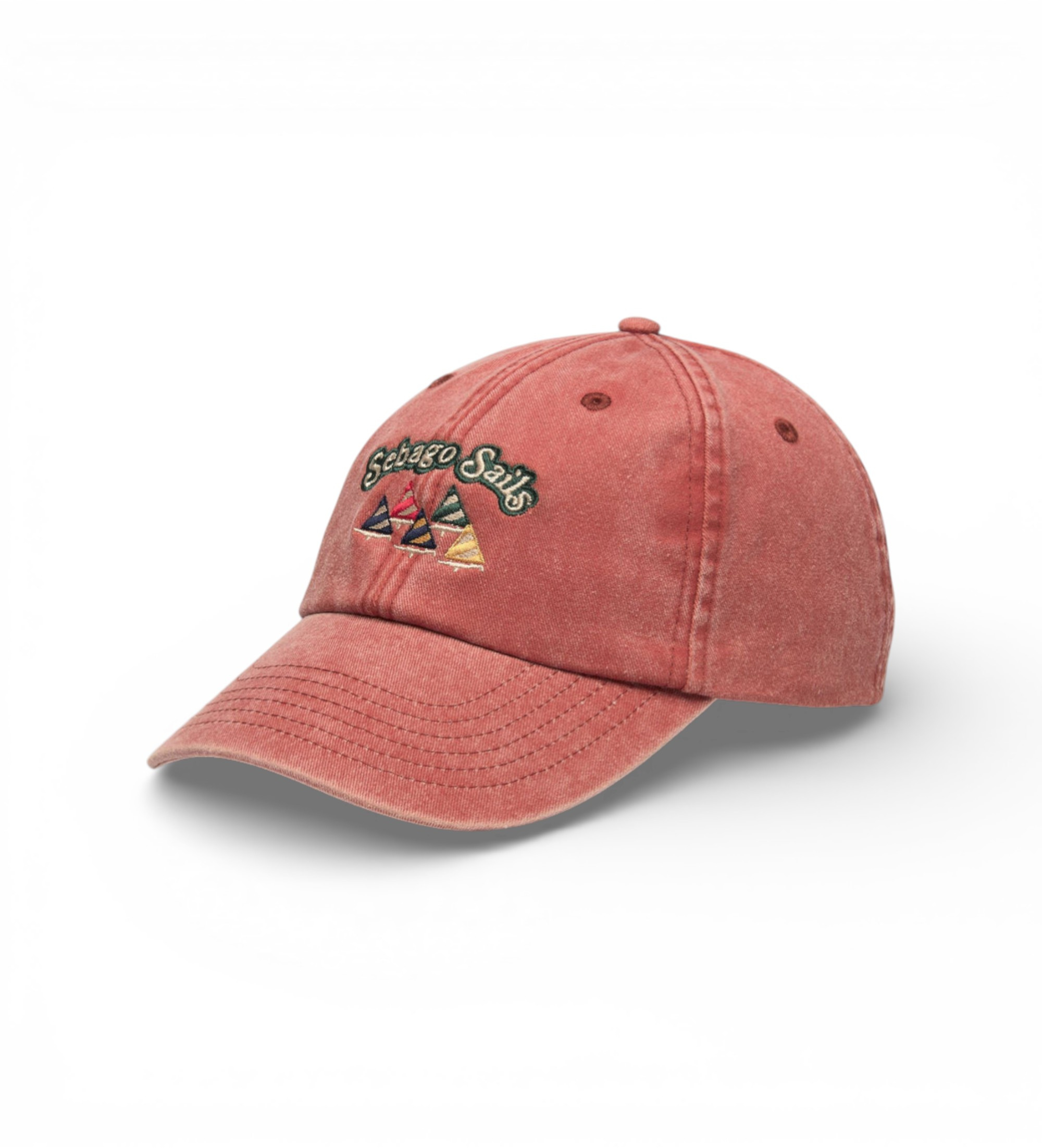 A must-have casual accessory for outdoor adventures. This soft, lightweight baseball cap is made from 100% cotton with a curved bill and an adjustable strap at the back. The front embroidery features delicate coloured sails and "Sebago Sails" lettering that evokes the spirit of traditional yachting, while the "Sebago" lettering on the back adds a distinctive touch.