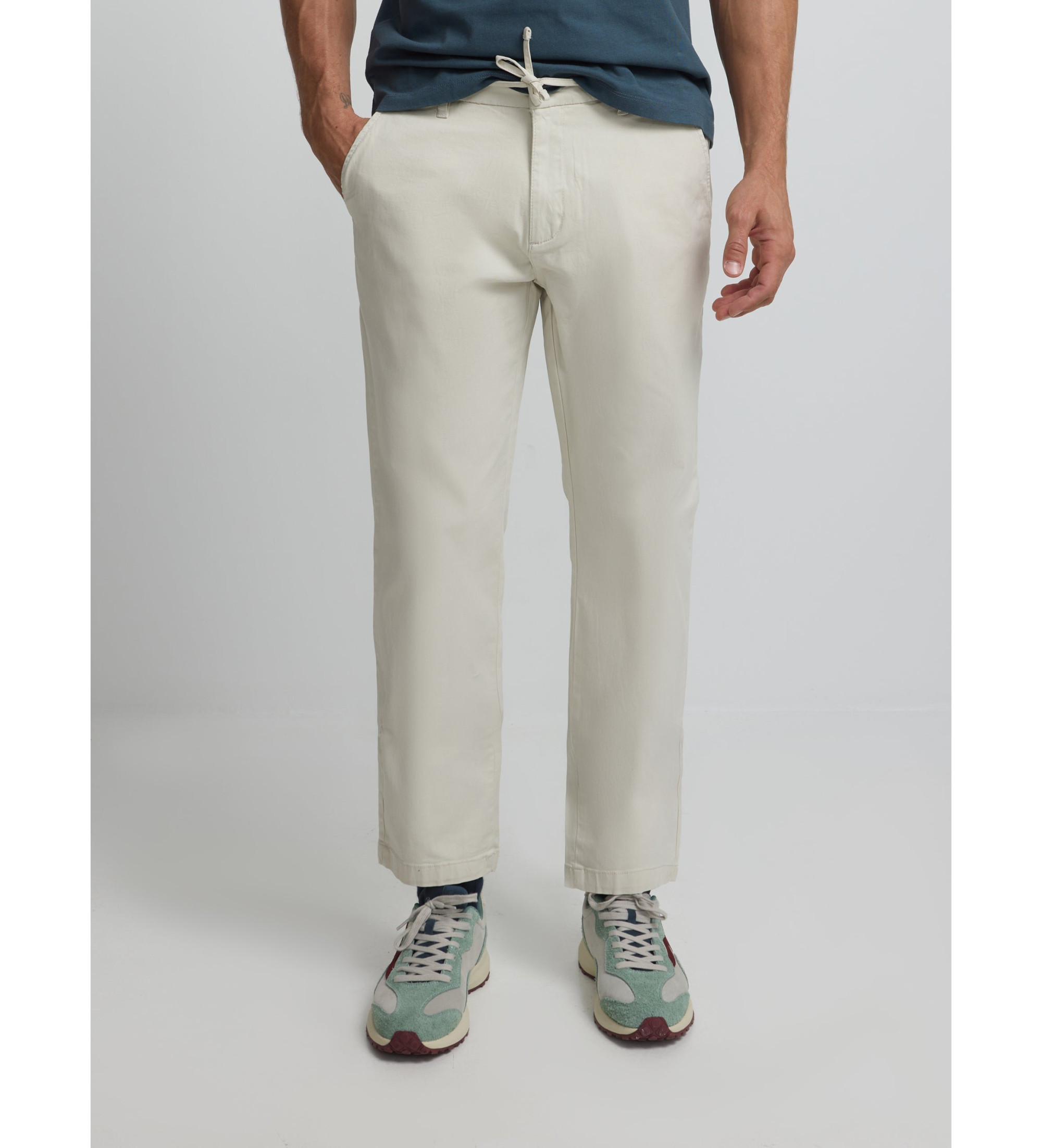 Casual sport jogger trousers in cotton blend. Features custom button and zip fastening, waist adjusters and front and back pockets. Features racket embroidery on back pocket.