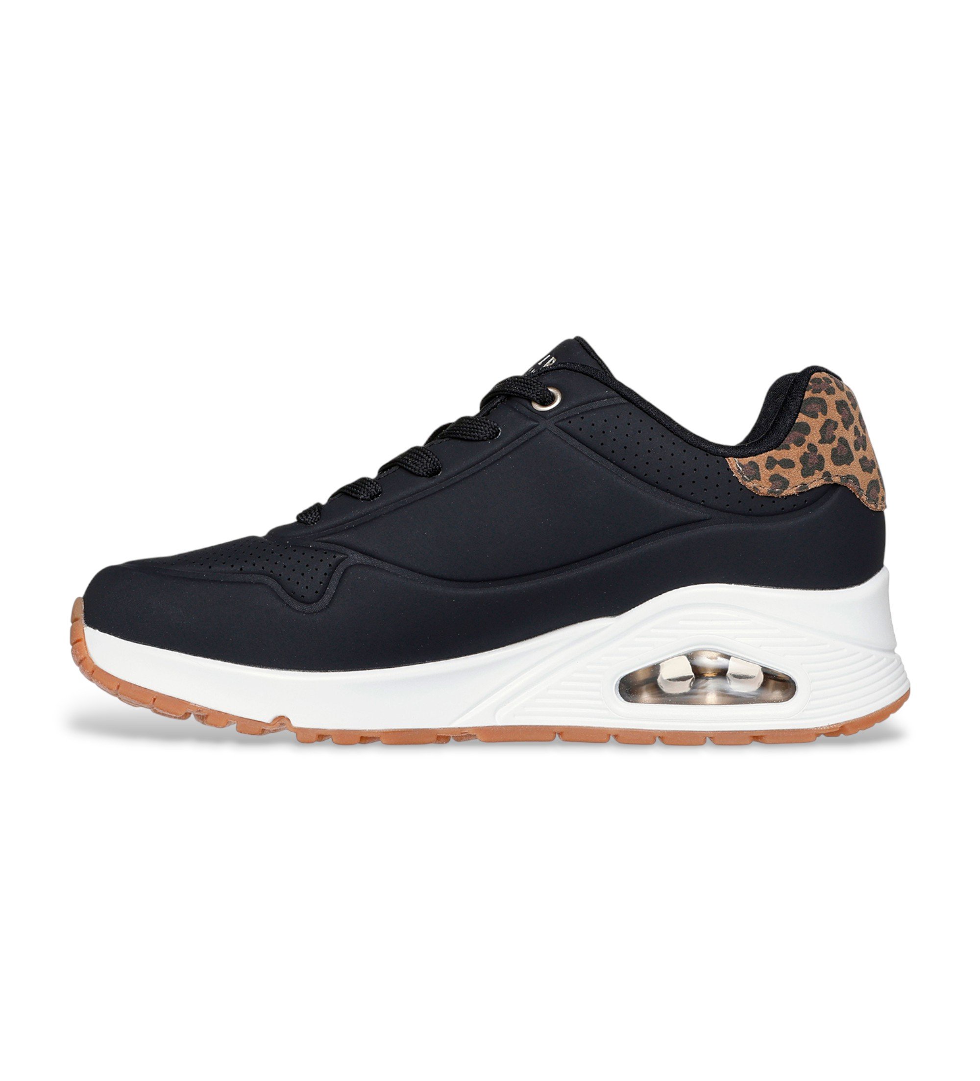 • Synthetic upper with laces and leopard print heel counter