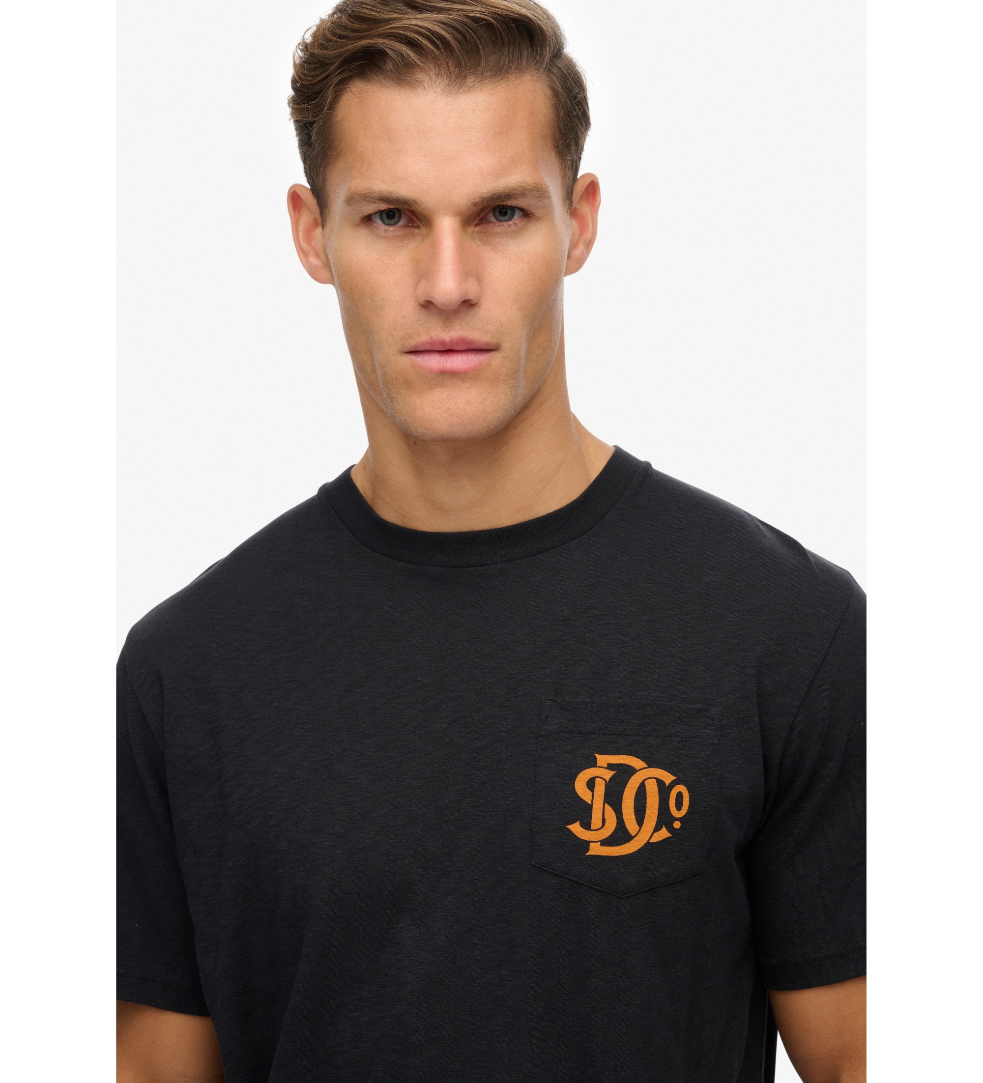 With a relaxed fit, this Superdry t-shirt offers unrivalled style. The classic fit is ideal for those looking for a garment that is neither too tight nor too loose. Stay true to your usual size. The crew neck and chest pocket with logo print captures the traditional and functional essence of the brand. Inspired by workwear, this graphic tee is a timeless essential that adds an edgy touch to your casual wardrobe. Ideal as an underwear piece or a mainstay of everyday looks, the possibilities for this classically styled essential are virtually endless.