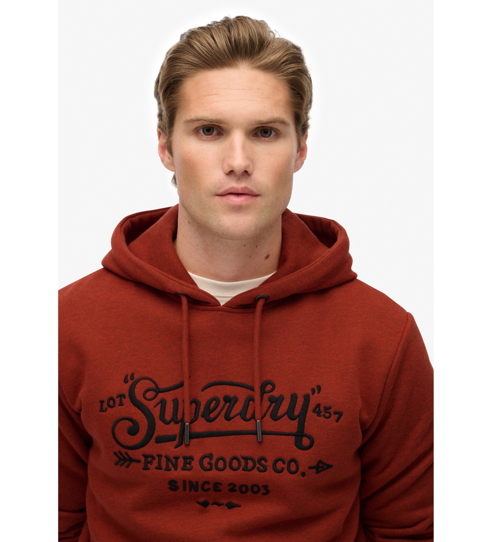 With a relaxed fit, the Superdry hoodie combines comfort and style with an iconic vintage look. The adjustable drawstring hood with ribbed trims adds functionality, while the large front pocket and embroidered logo on the chest and cuff label add to the distinctive look.