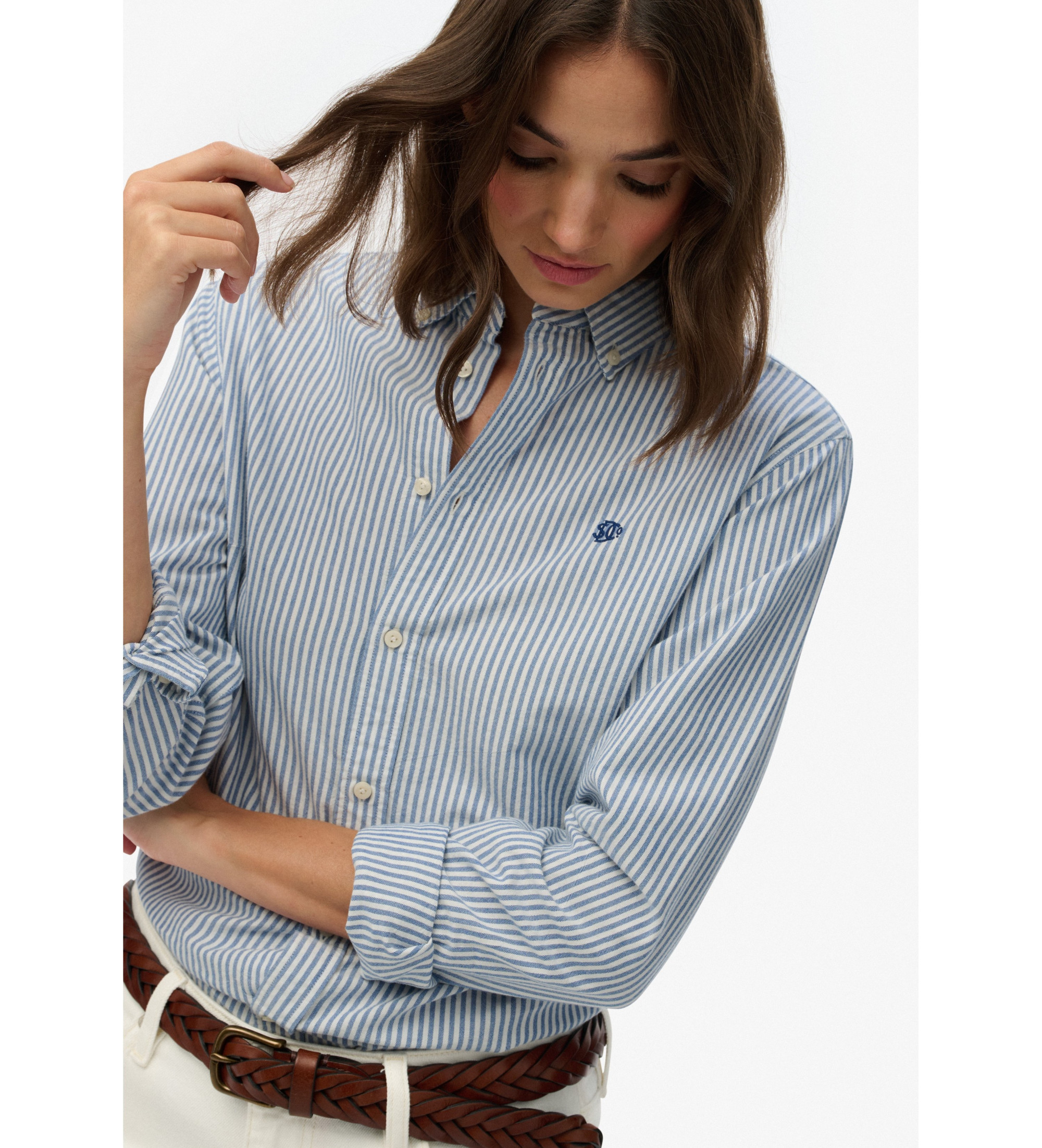Our long-sleeved slim fit oxford shirt combines minimalism with contemporary elegance. Cut in a slim fit to fit the body, it features a classic collar with button fastening, a refreshed embroidered logo on the chest and a distinctive label on the back. This shirt is the definition of effortless sophistication, making it a wardrobe essential.
