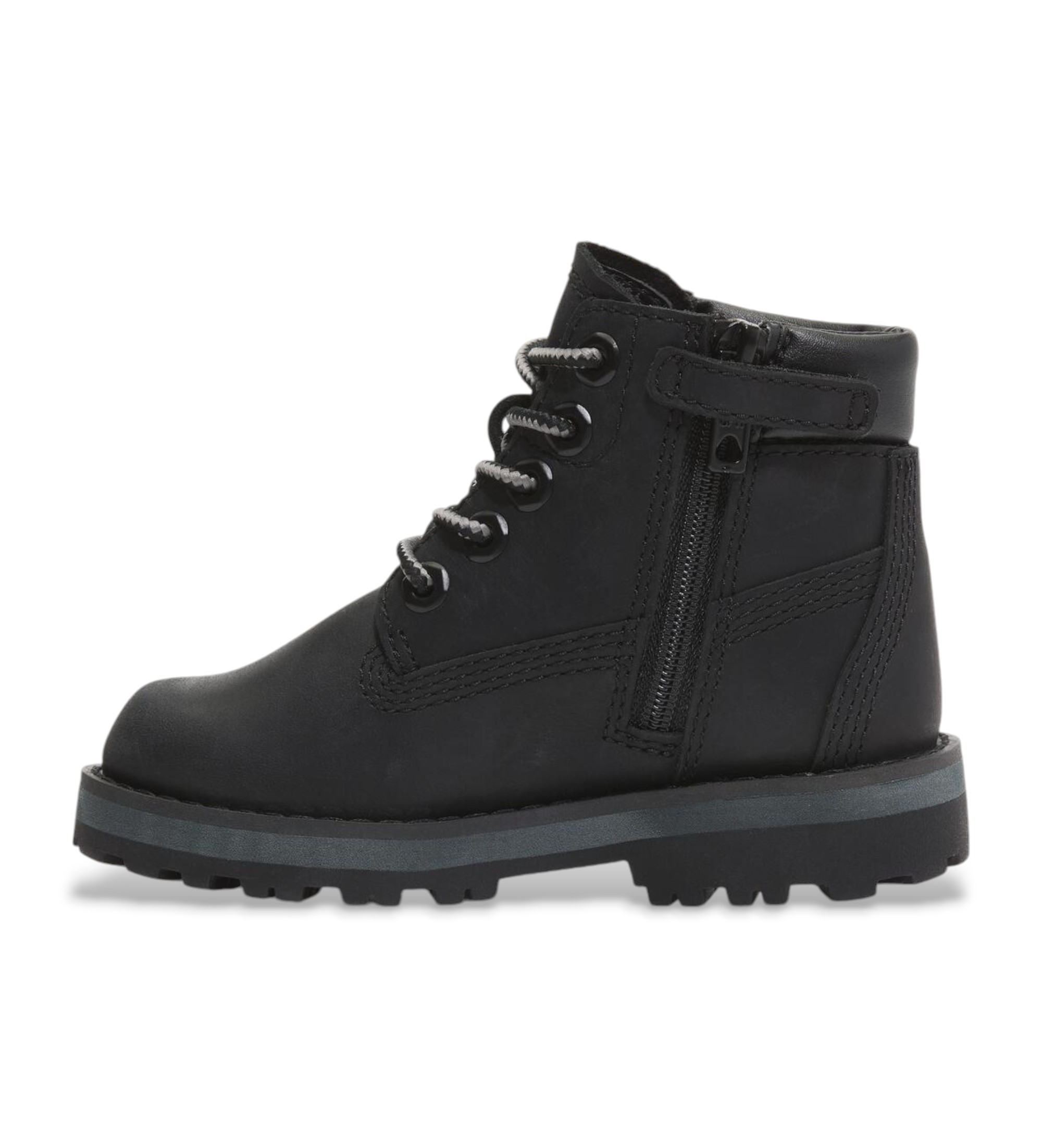 Give your kids all the style and performance they need. The perfect blend of comfort and function, these sturdy boots feature a traditional lace-up closure made from 100% recycled PET, a practical side zip and a comfortable OrthoLite® footbed. They also feature a ReBOTL™ lining, a fabric made from at least 50% recycled PET plastic, and an upper made from premium Timberland® Leather.