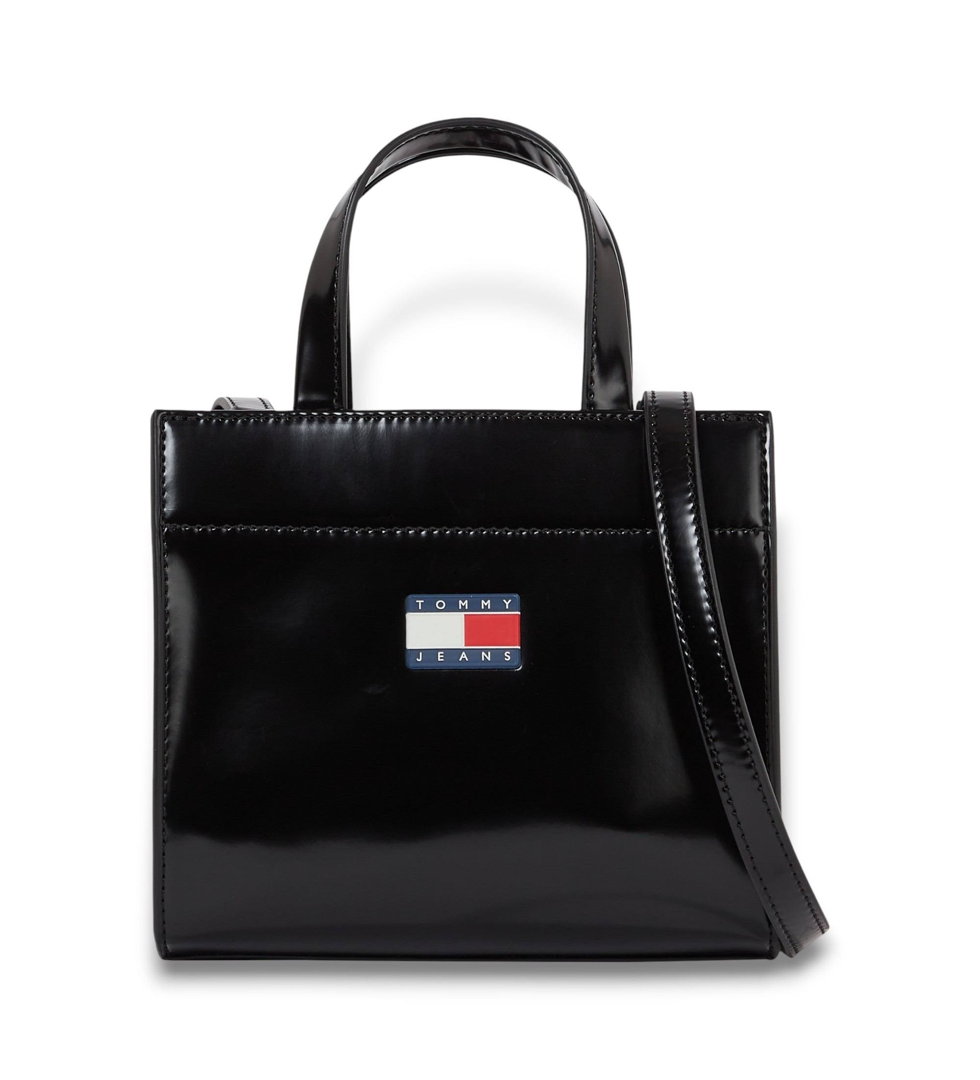 Combine casual style and functionality with this Tommy Jeans bag, designed with a glossy finish for a modern twist. It features two logo-repeated top handles and an adjustable, removable crossbody strap to suit any occasion.