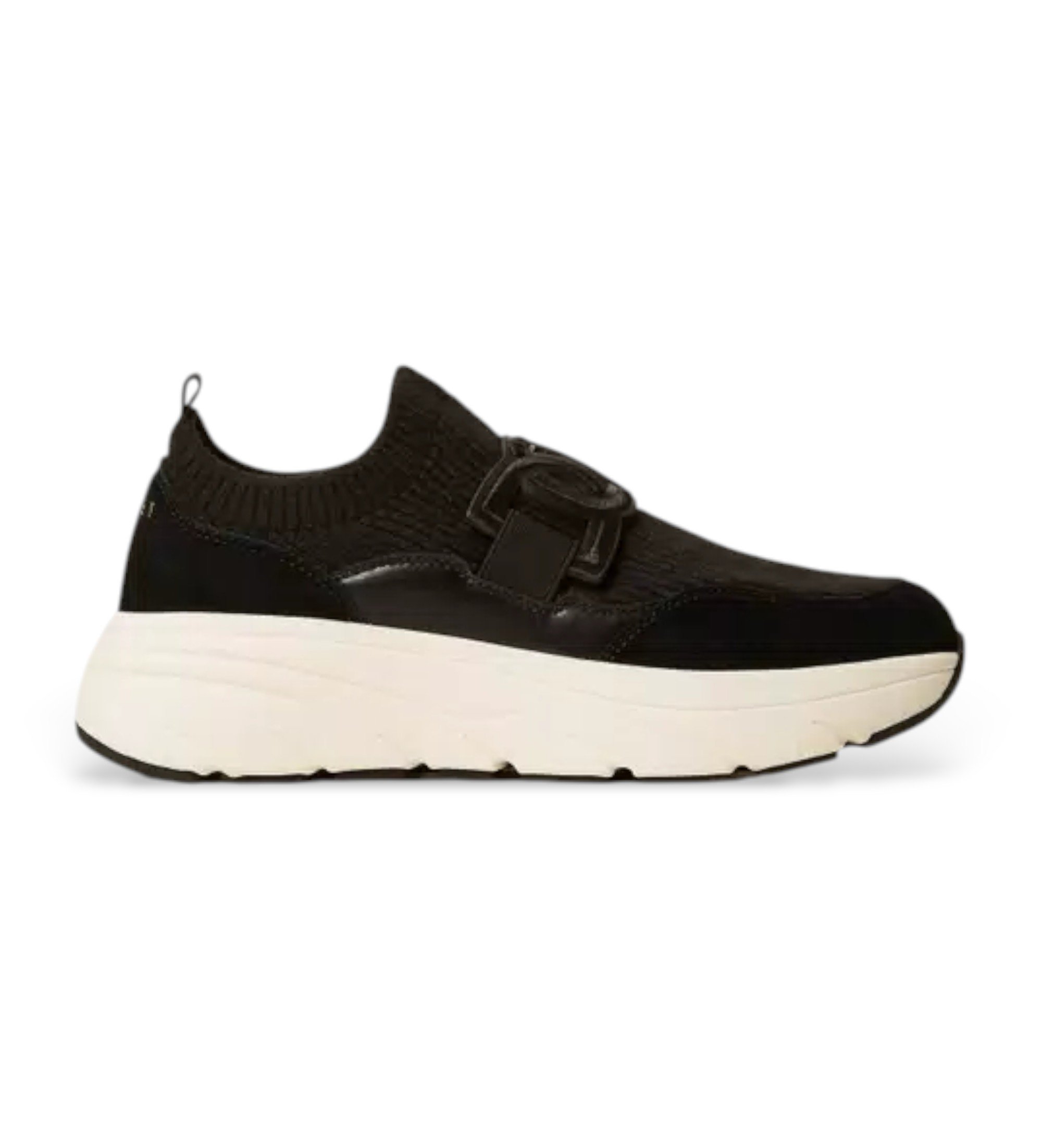 Stretch fabric slip-on trainers with leather effect inserts, iconic Oval T detail at front, lettering logo at back and rubber sole.