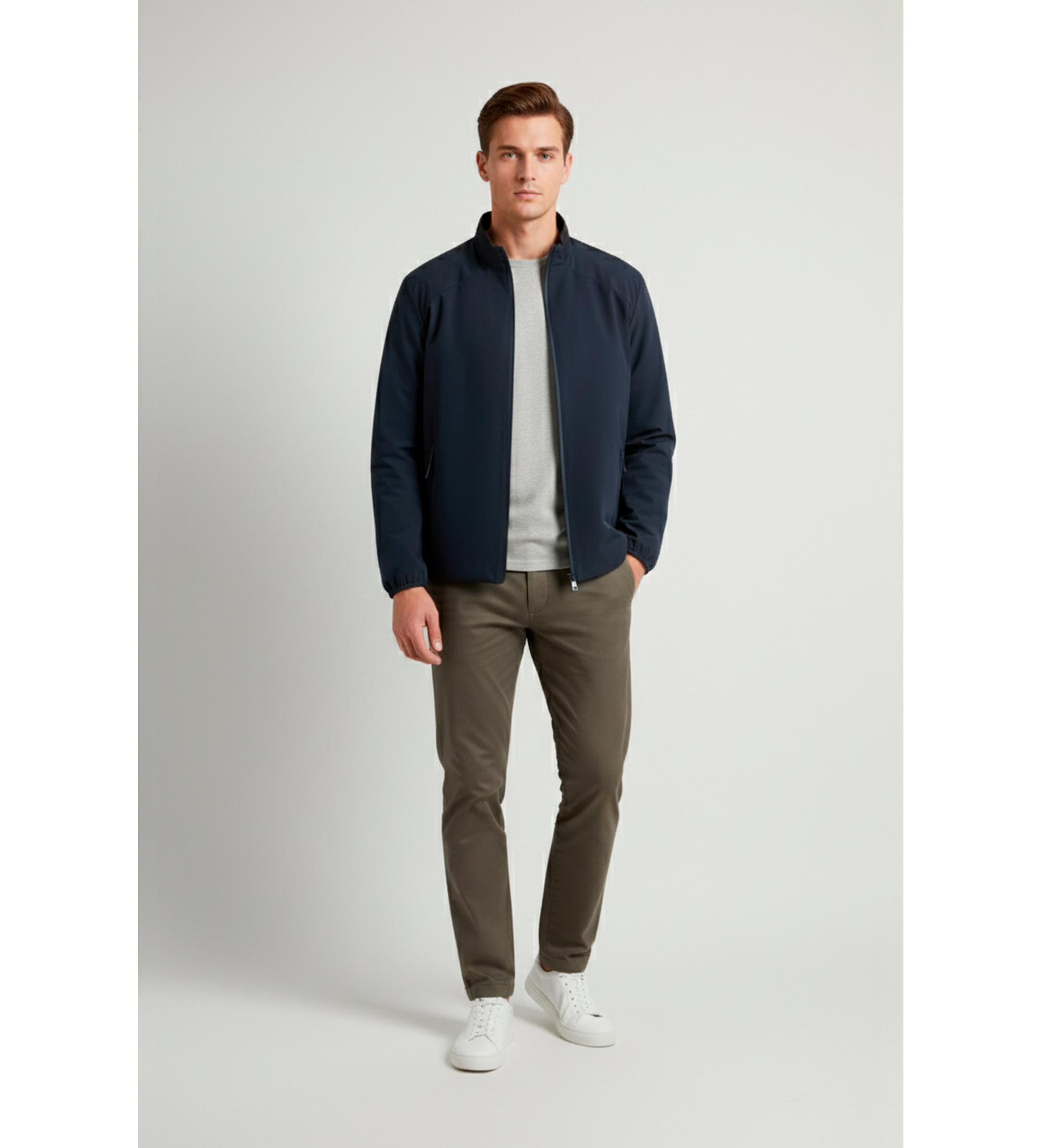 A fusion of functionality and simple style, this two-layer knit bomber jacket is ideal for the in-between seasons. The breathable, wind- and water-resistant material ensures protection against the elements, while the duck down filling provides the perfect degree of warmth for the in-between months. Stretch details and a two-way zip make the jacket practical and easy to wear, perfect for busy days.