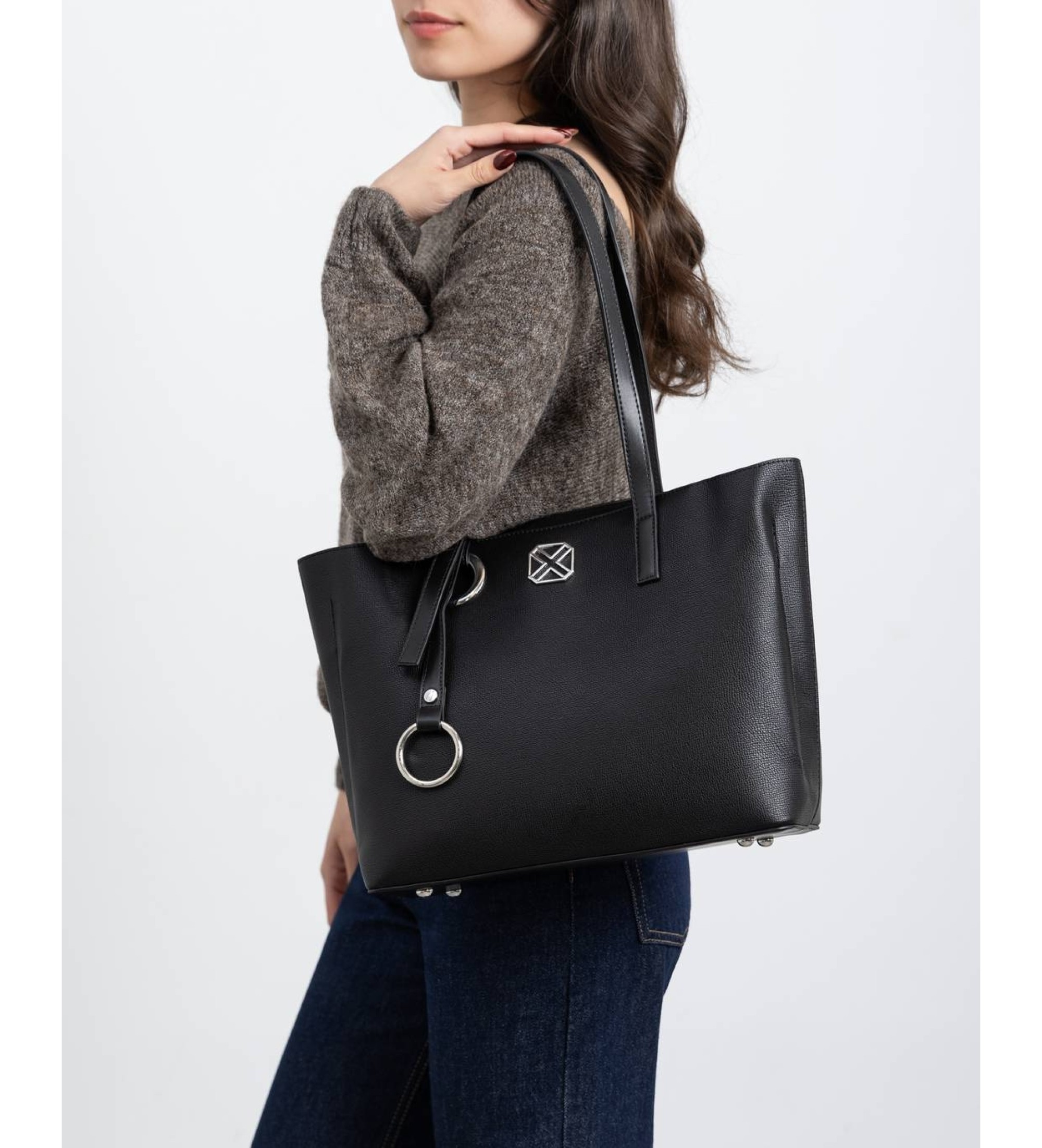 Shopper bag for women from Xti. Finished in a material that imitates leather, perfect for an elegant and modern look. Its zip closure guarantees the safety of your belongings. Ideal for any occasion. Measurements: 26 x 38 x 12 cm. This model has been certified vegan by the worldwide organisation PETA (Animal Rights Organisation).