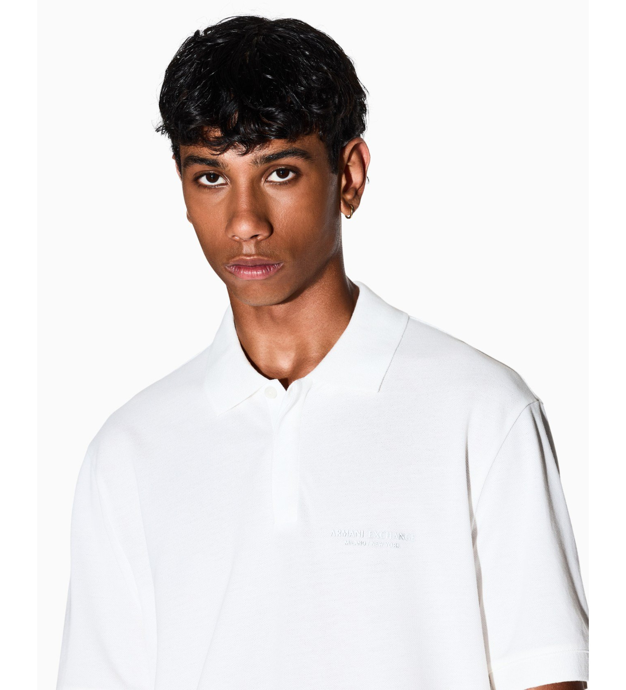 Polo de corte regular confeccionado en piqué de algodón clásico, una prenda esencial que combina comodidad con un estilo limpio y sofisticado. Este polo destaca por su diseño minimalista, realzado por la discreta inscripción "Armani Exchange Milano / New York" impresa tono sobre tono en el pecho, un detalle que le aporta un toque de elegancia atemporal. Con cuello clásico y mangas cortas, ofrece un ajuste cómodo y una versatilidad que lo hace perfecto para cualquier ocasión.