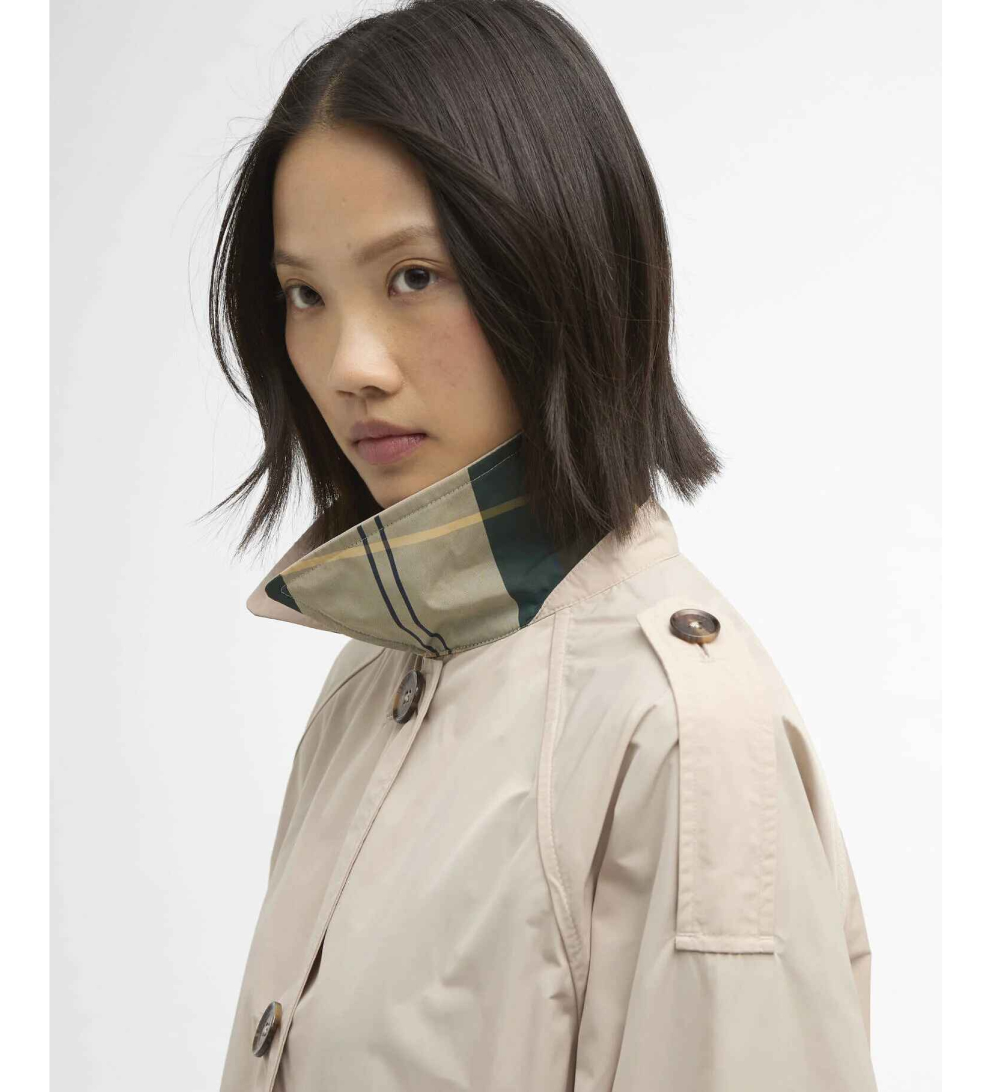 El impermeable Barbour Maggie es un abrigo ligero de largo medio diseñado para mantenerte a la moda y seco. Este impermeable presenta detalles clásicos como charreteras, botones de imitación de cuerno, bolsillos ribeteados y un profundo pliegue invertido en la espalda para una silueta sofisticada. Sin forro para mayor ligereza, incluye un cuello, bajo cuello y puños de tartán para un toque distintivo de Barbour. Con su corte relajado, este impermeable es perfecto para usar en capas en días de lluvia.