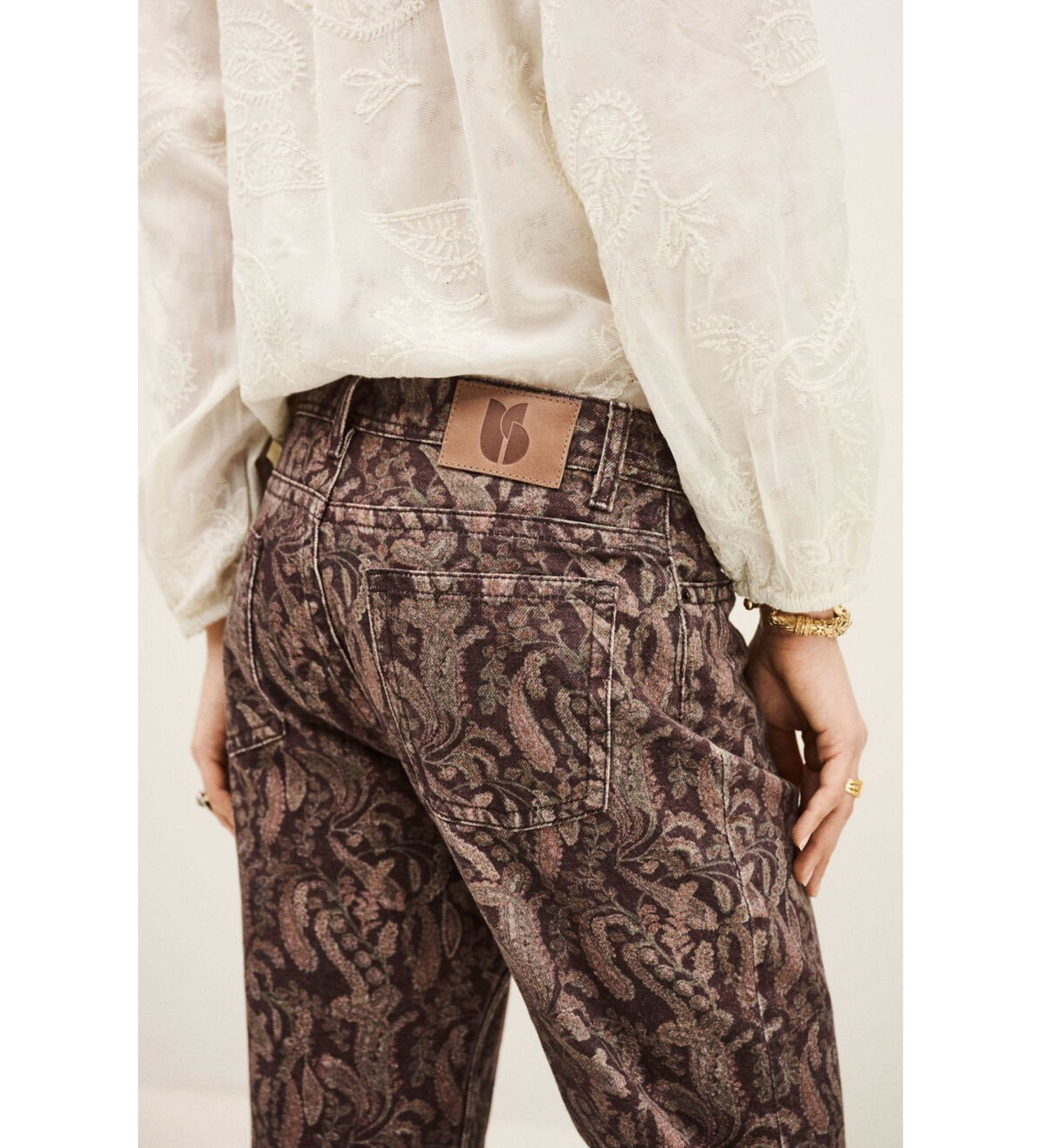 El pantalónTooty destaca por su estampado paisley de inspiración bohemia y su corte recto, ideal para estilizar la silueta con elegancia. Confeccionado en un algodón suave y estructurado, ofrece una caída impecable y un confort óptimo para el día a día. Su cintura clásica con trabillas, cierre con botón y bolsillos tipo vaquero le aportan un aire casual chic. Nos encanta su motivo trabajado y sus tonos profundos que elevan cualquier look. Combínalo con una blusa fluida para un estilo femenino o con un jersey ajustado para un look más urbano.