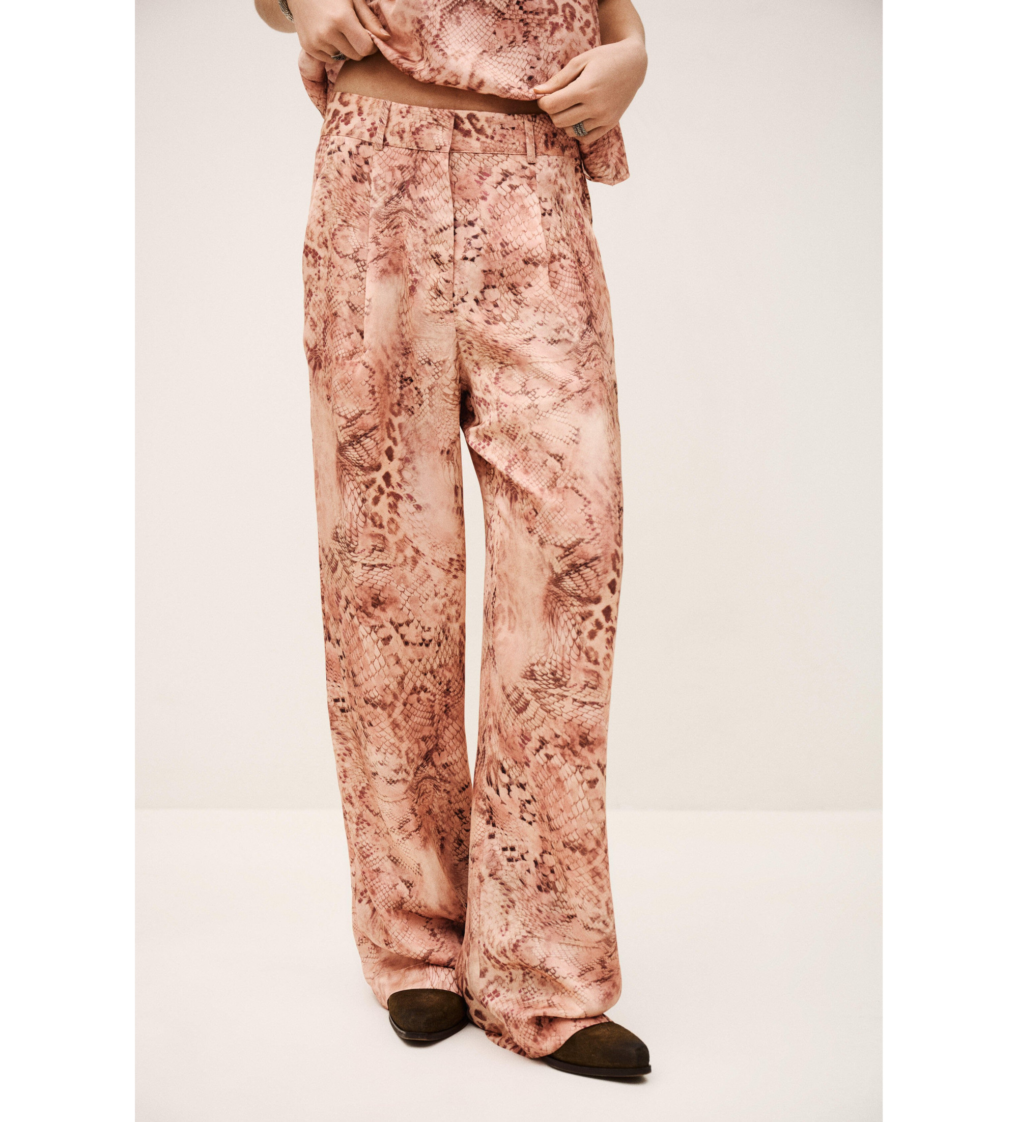 Pantalón CARRINA de ba&sh, una prenda de estilo actual con un aire sofisticado y desenfadado a la vez. Su diseño cuidado y su silueta favorecedora lo convierten en un básico versátil para el día a día, ideal tanto para looks casuales como para combinaciones más elegantes.