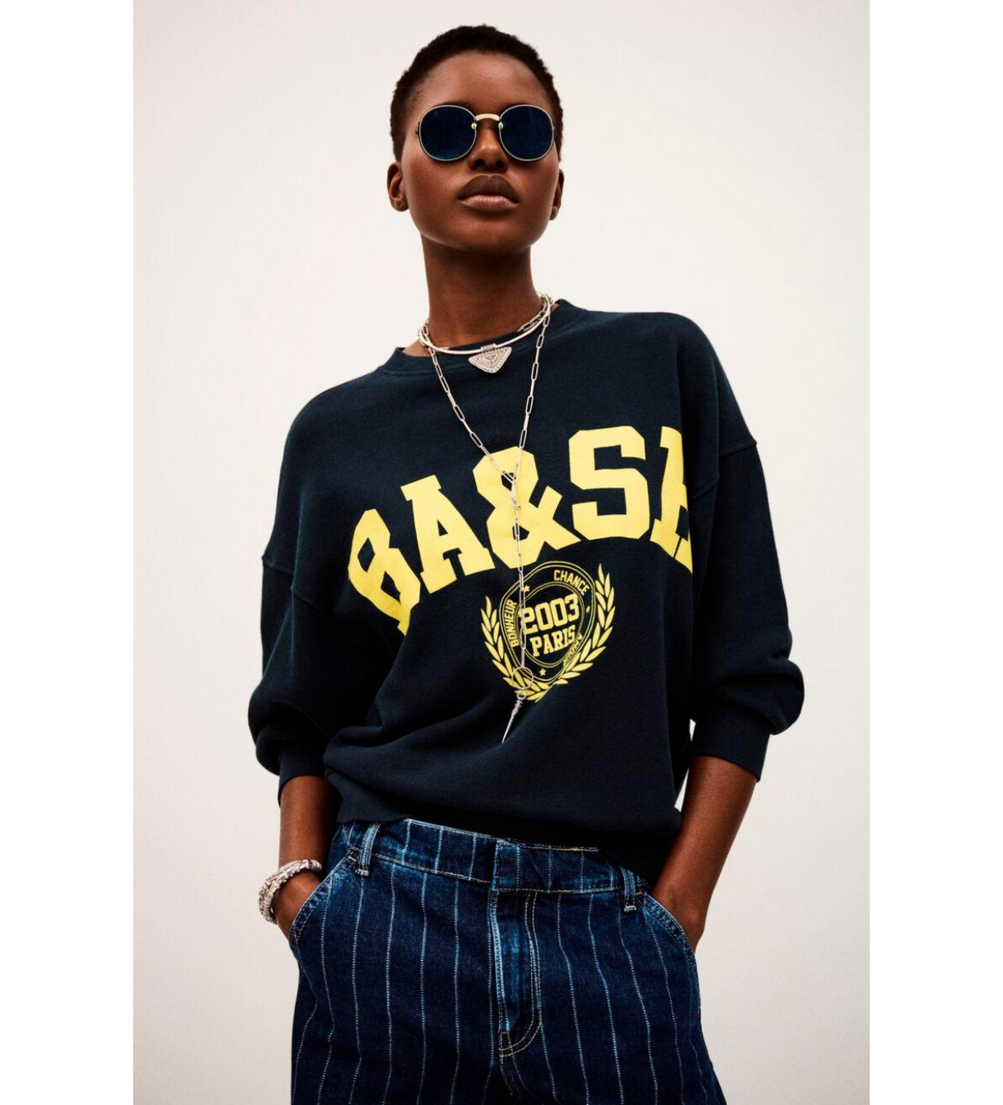La sudadera BENJAMIN es un modelo de manga larga, inspirado en las sudaderas deportivas. Cuello redondo y puños de canalé, es ultracómodo. De corte bastante holgado, es cropped para un estilo chic y deportivo. Las sisas están caídas para darle un estilo moderno y nos encantan los elegantes estampados en el frente. Con su estilo American University, las decoraciones son atemporales y fáciles de combinar con cualquier look. ¡Para combinar con shorts vaqueros para un estilo campus que nos gusta!
