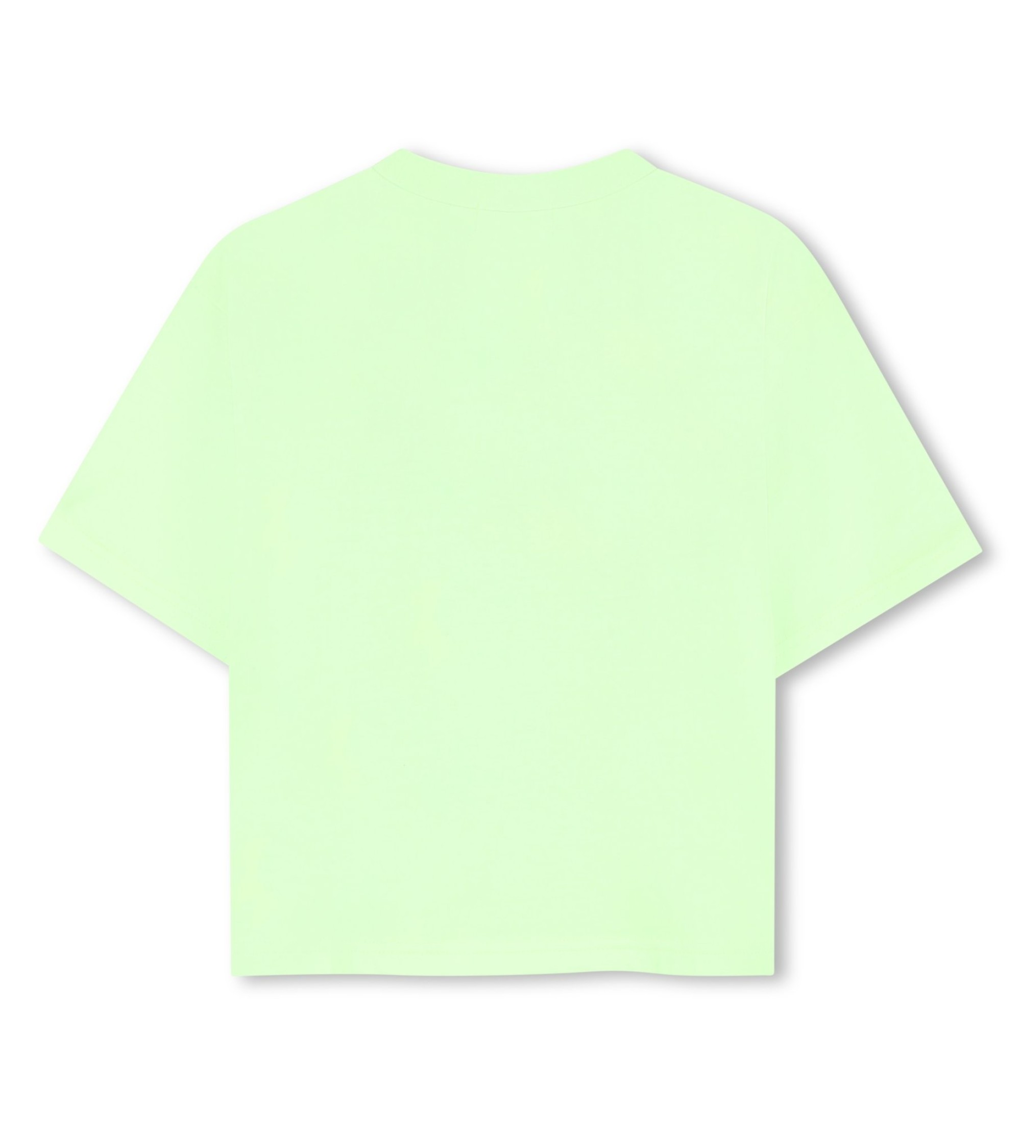 Camiseta de jersey de corte holgado con cuello acanalado e ilustración frontal con plástico y lentejuelas. Una pieza cómoda y llamativa que combina la suavidad del jersey con detalles decorativos mixtos de gran impacto visual para un look casual y festivo con mucha personalidad.