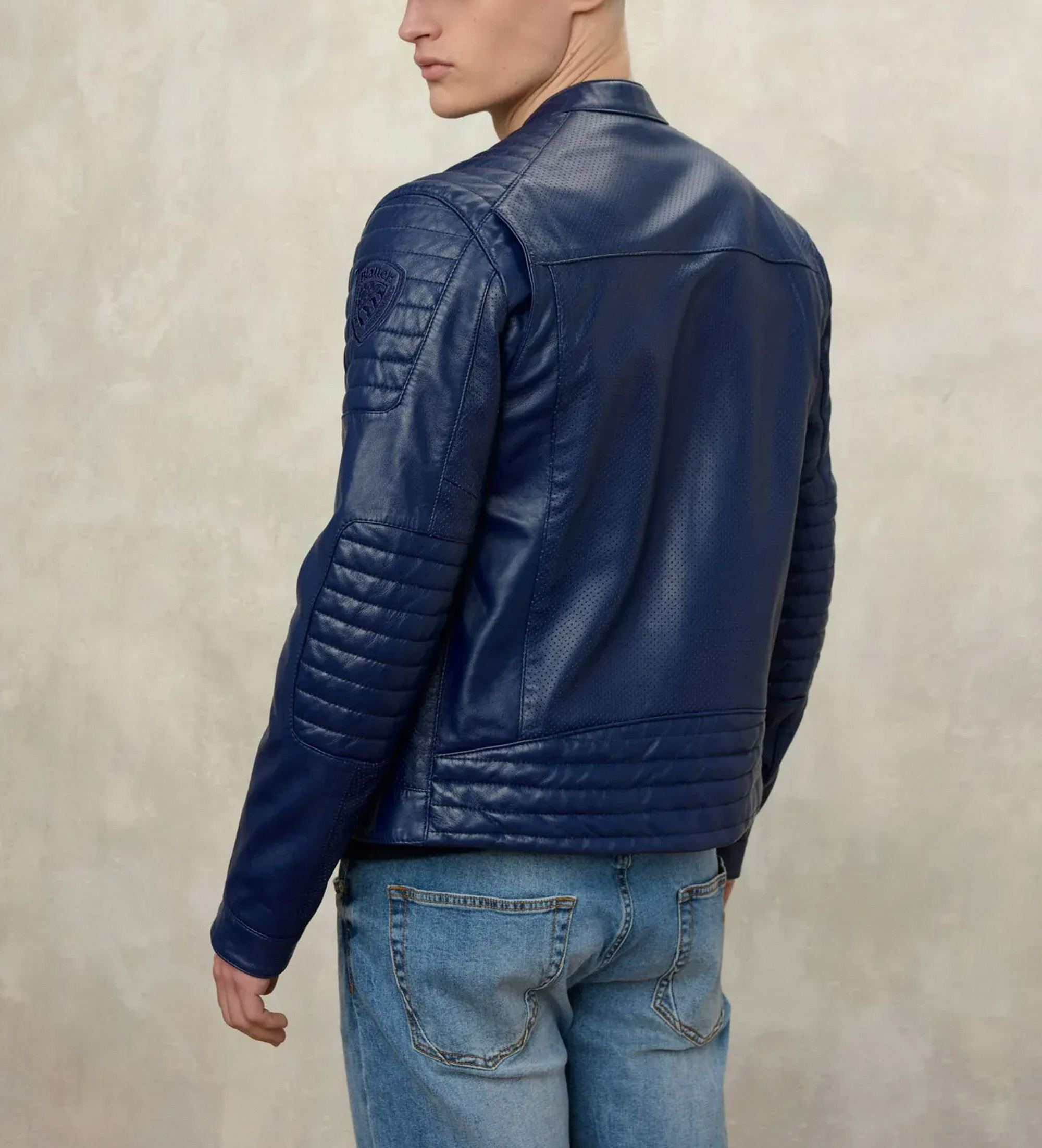 Chaqueta de piel perforada. Ligero acolchado en hombros, mangas, codos y dobladillo trasero. Fuelle en los omóplatos para un efecto de espalda recta. Diseñada para temporadas de transición, combina tendencia y carácter.