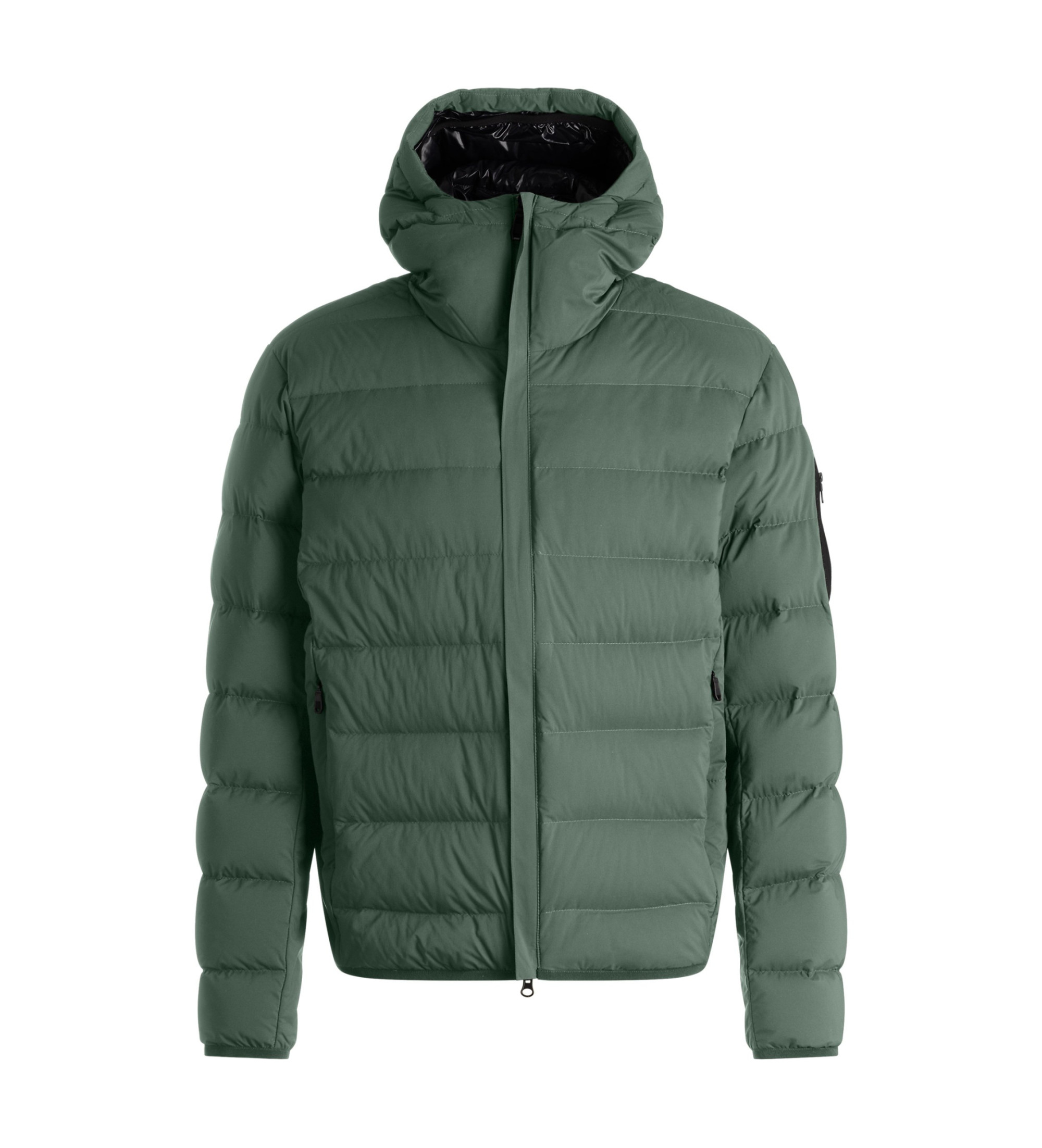 Esta chaqueta BOSS Menswear, con protección contra la lluvia, está diseñada con tejido superelástico relleno de plumón y plumas de pato certificados. Incluye protección contra el viento y ribete en la capucha.