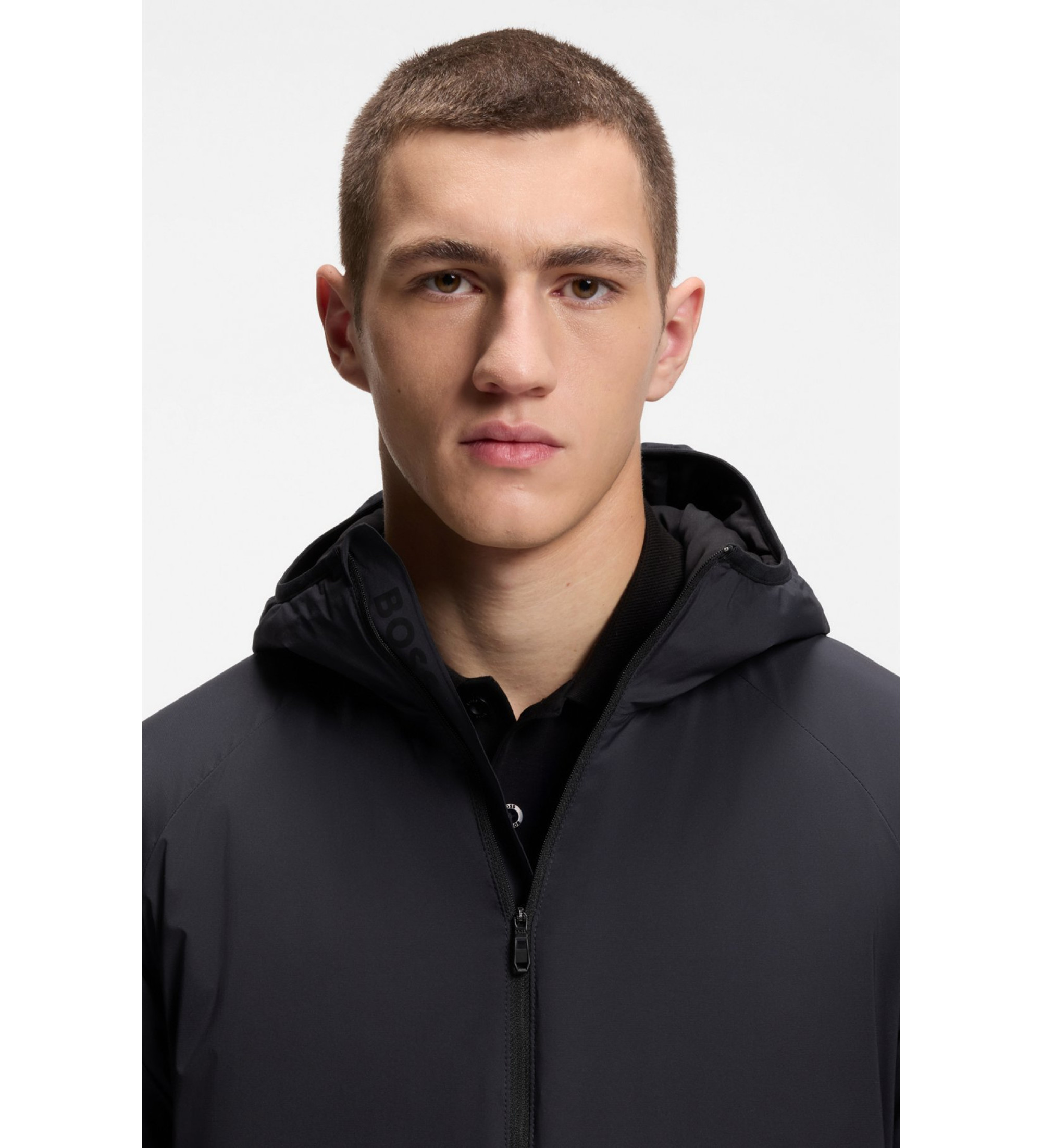 Cómoda y protectora, esta chaqueta BOSS Hombre regular fit cuenta con un relleno elástico para facilitar el movimiento. Bolsillo con cremallera y logo en la manga. Bolsillo interior seguro.