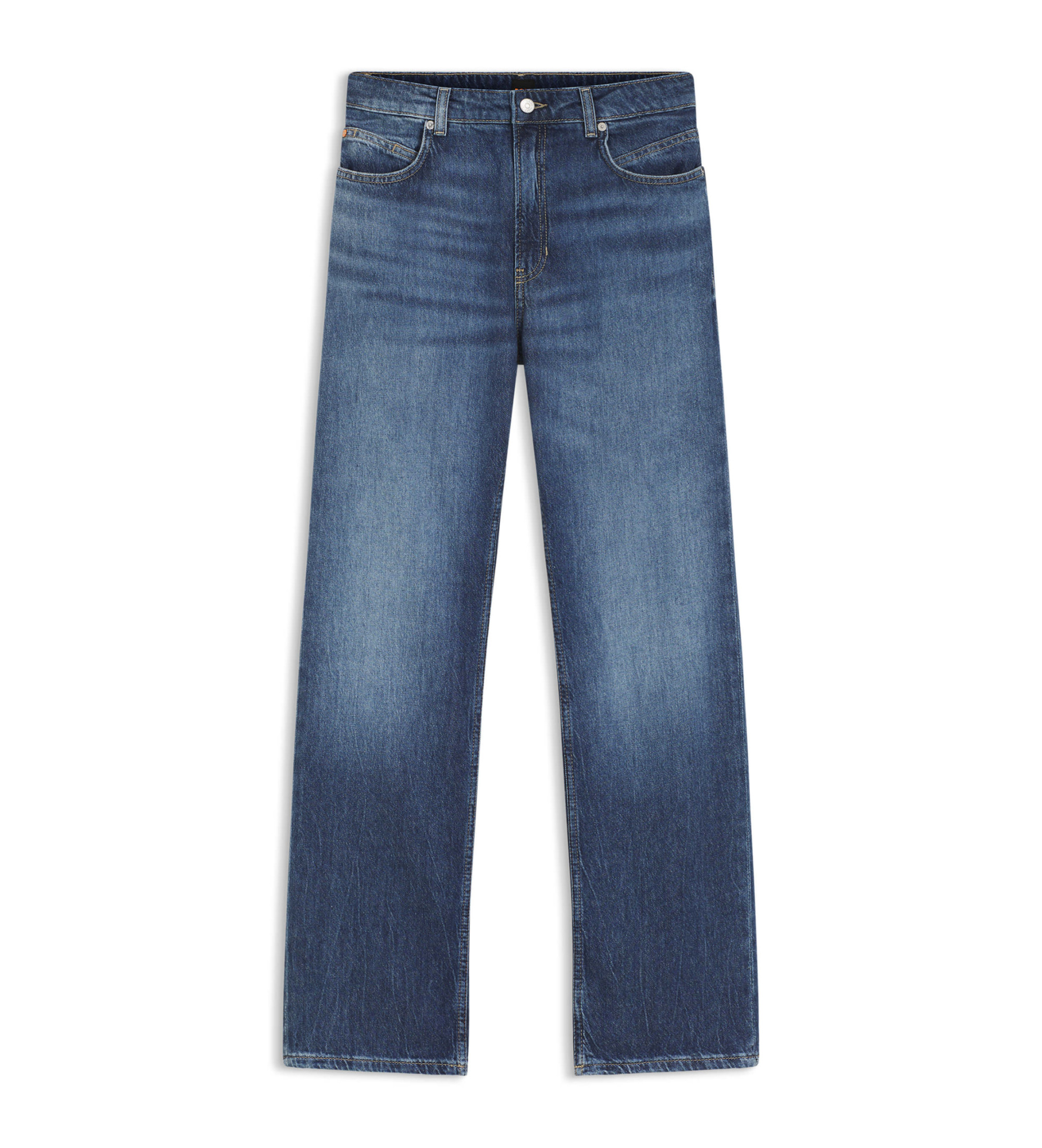 Con cintura alta y corte regular, estos jeans de BOSS Womenswear están confeccionados en auténtico denim jaspeado en tono azul oscuro. Presentan ribetes distintivos de la marca.