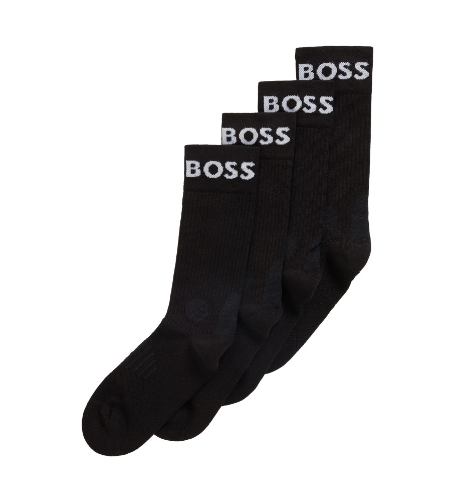 Dos pares de calcetines BOSS marca de la casa. Estos calcetines tobilleros de aire moderno se han elaborado en hilos de mezcla de algodón con elástico y cuentan con una amortiguación mullida para resultar más cómodos a diario. La estructura especial y los logos en contraste redondean el diseño.