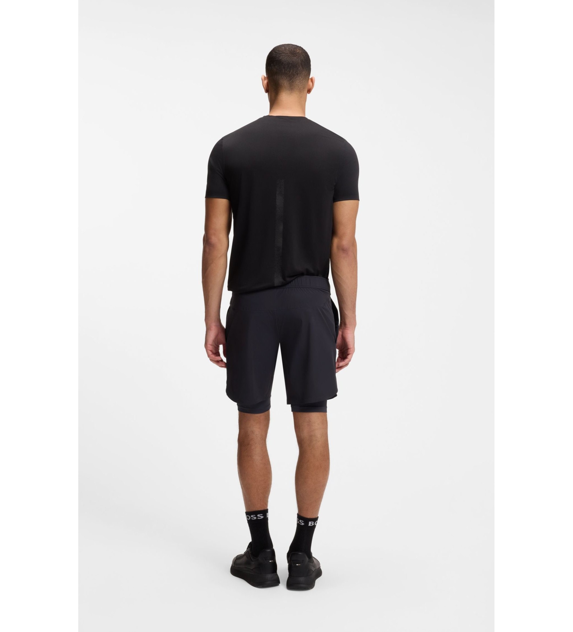 Estos shorts dos en uno BOSS Hombre confeccionados con un tejido multielástico con absorción de la humedad ofrecen libertad de movimiento y rendimiento. Bolsillo interior de malla para guardar sus pertenencias.