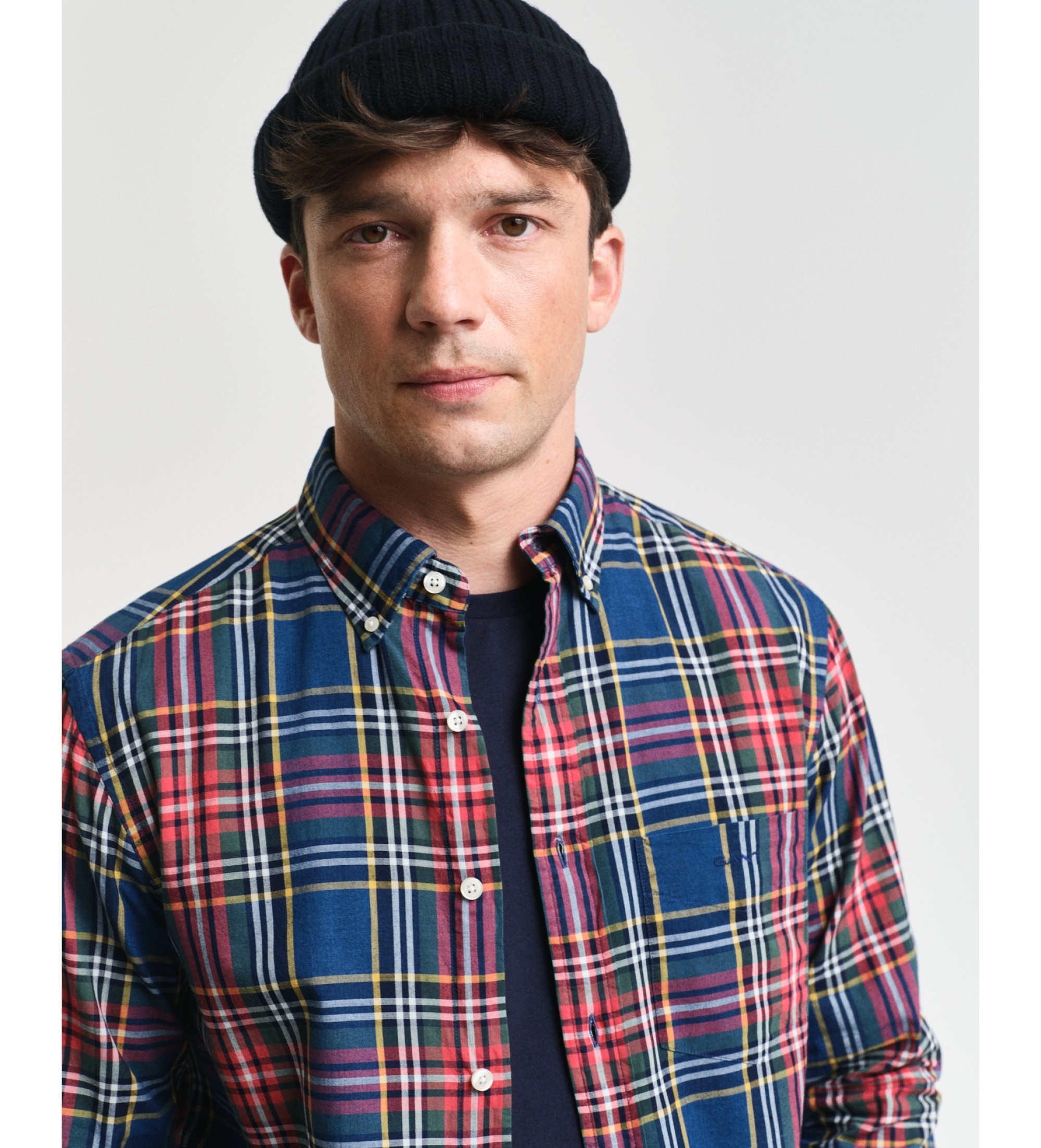 Esta camisa, confeccionada con un tejido añil ligero, está diseñada con un corte normal para llevar por fuera del pantalón y un estampado de cuadros en hilo teñido añil. Cuenta con cuello abotonado clásico, puños ajustables, bajo curvado, fuelle con presilla en la espalda y el logotipo GANT bordado en el bolsillo del pecho. Al elegir los productos de algodón, apoyas la inversión de GANT en la iniciativa Better Cotton. Este producto se ha obtenido mediante un sistema de balance de masa y, por lo tanto, podría no contener Better Cotton. Infórmate en bettercotton.org/massbalance.