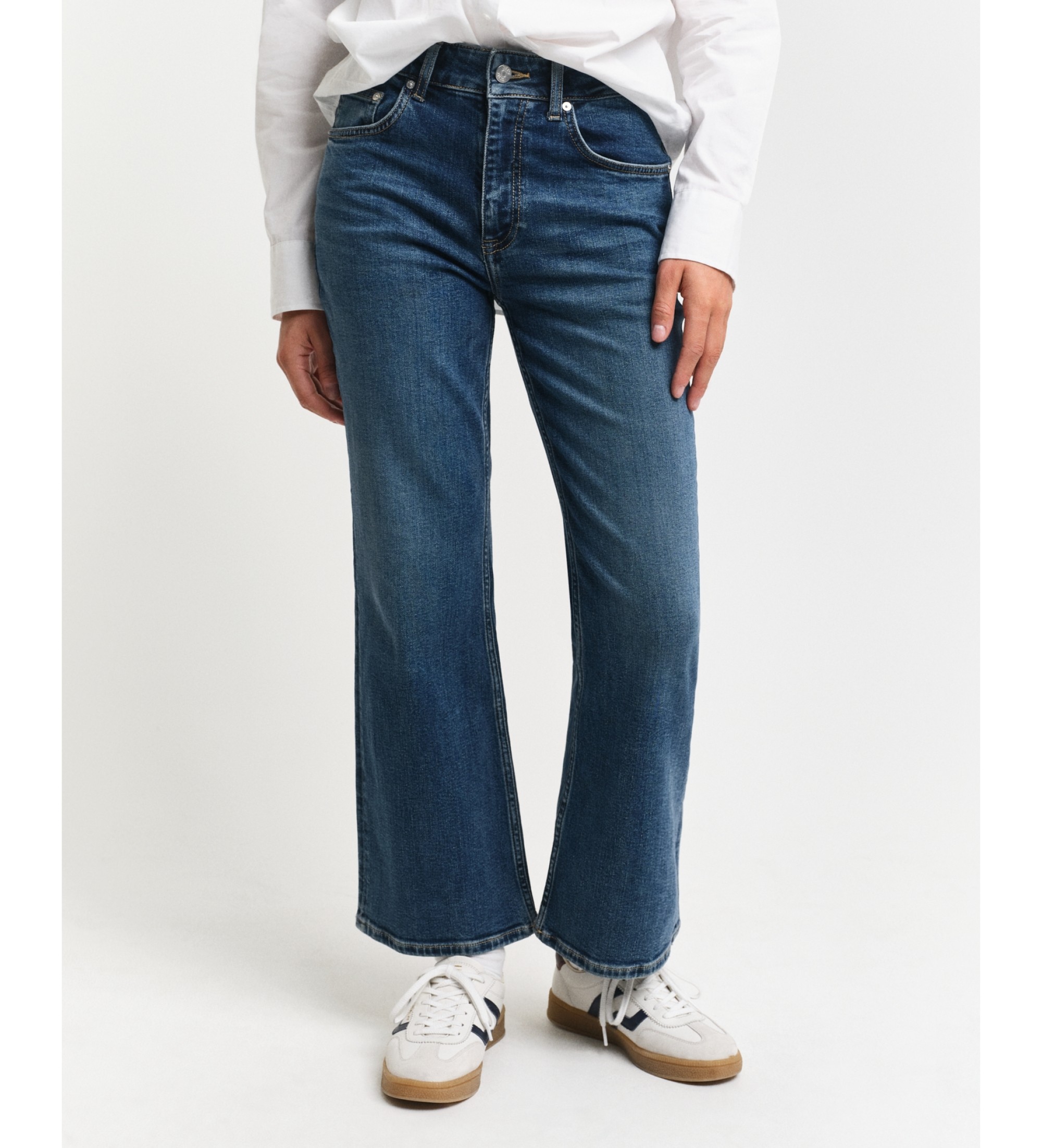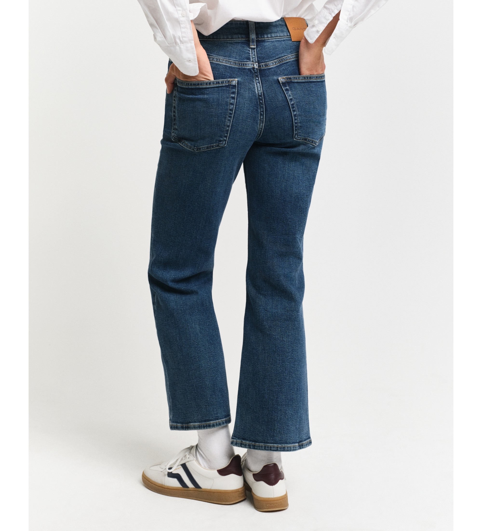 Estos vaqueros GANT inspirados en los años setenta están confeccionados en algodón con un toque elástico para mayor comodidad. Son de tiro medio y se ajustan perfectamente a las caderas para después ensancharse hasta el bajo, que queda por encima del tobillo. Llevan botones de pie y un parche con el logotipo GANT de piel en la parte posterior de la cinturilla. Al elegir los productos de algodón, apoyas la inversión de GANT en la iniciativa Better Cotton. Este producto se ha obtenido mediante un sistema de balance de masa y, por lo tanto, podría no contener Better Cotton. Infórmate en bettercotton.org/massbalance.