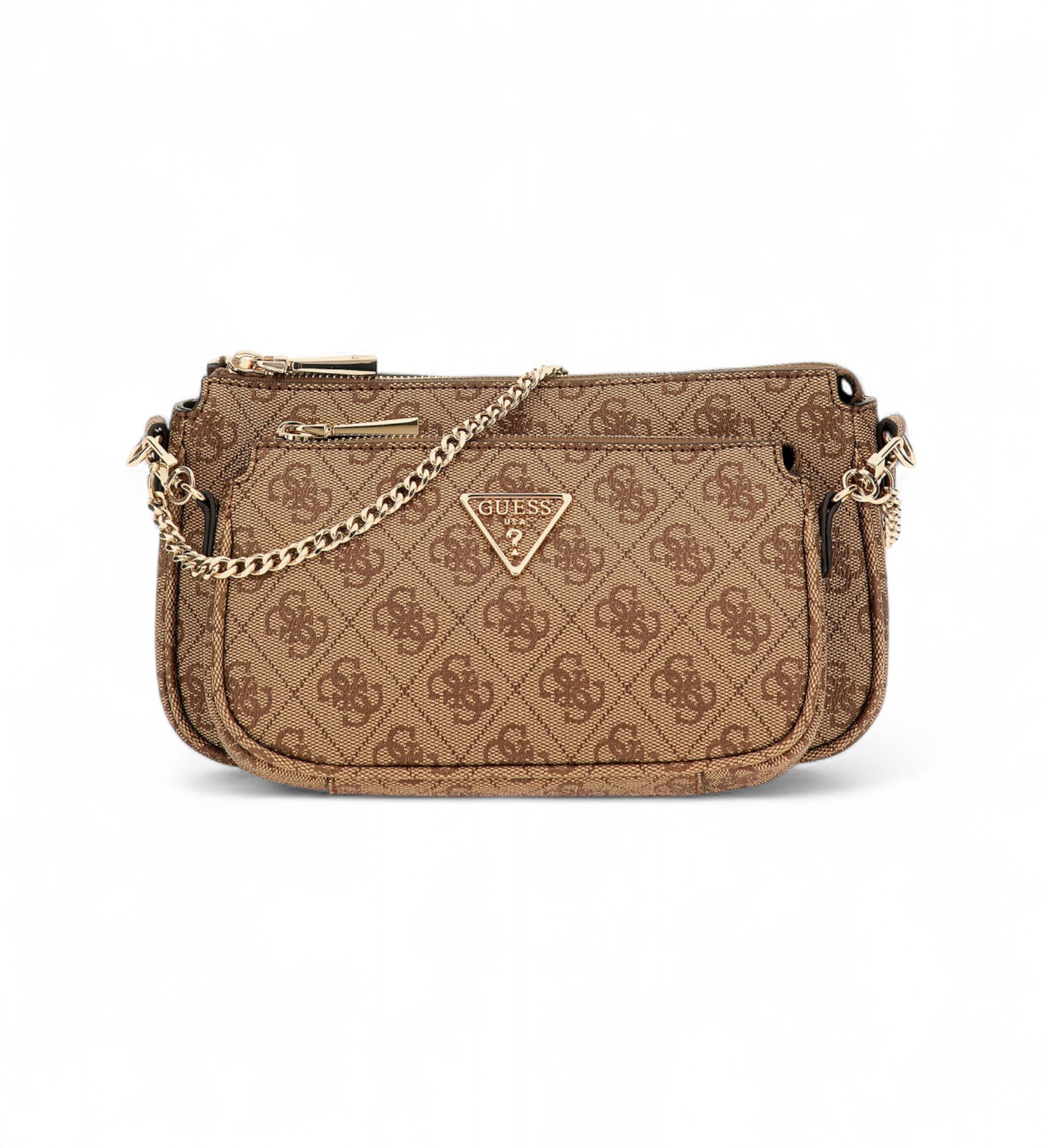Un clásico moderno con identidad propia. El bolso Noelle de GUESS se presenta en una versión con estampado integral del logotipo 4G sobre fondo marrón, perfecto para aportar carácter a cualquier look. Confeccionado en piel sintética, combina funcionalidad y estilo gracias a su diseño estructurado y los detalles metálicos en dorado pálido.
