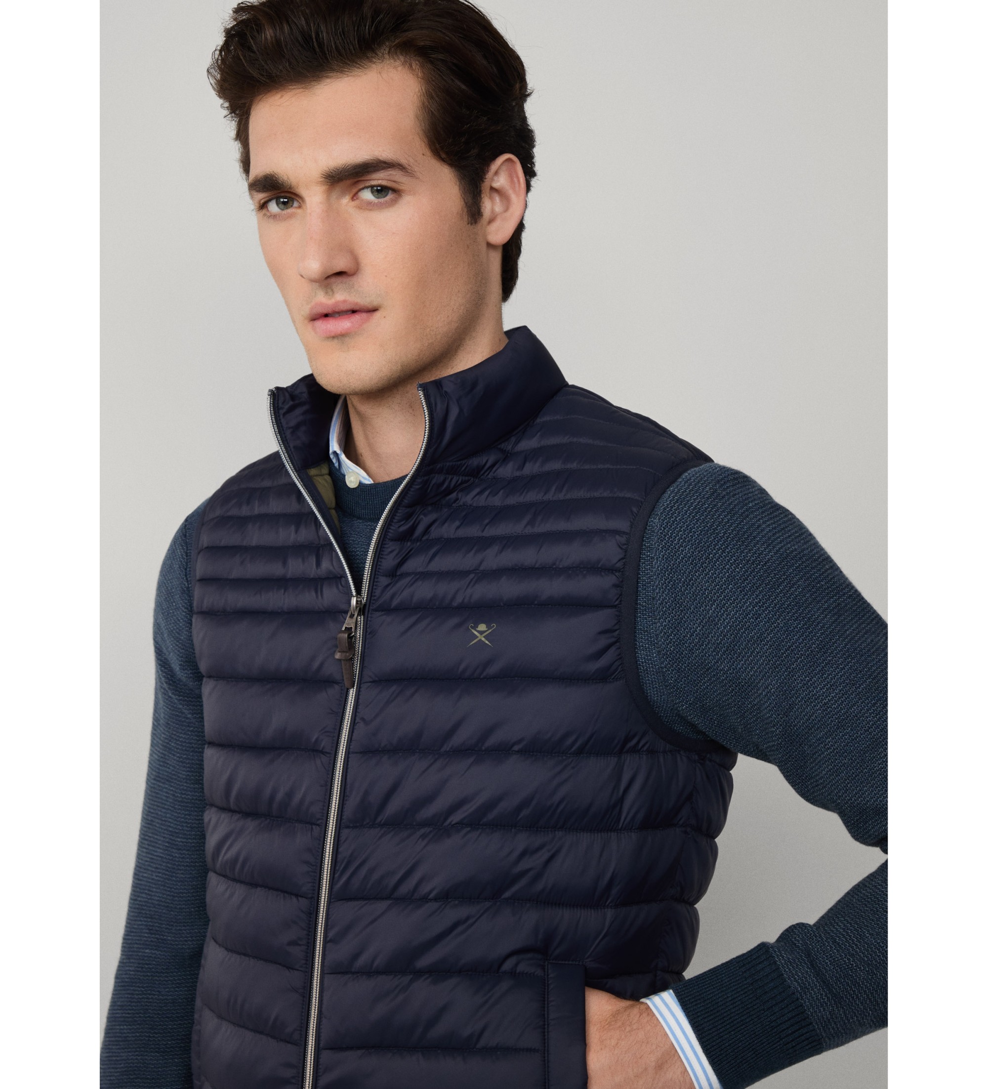 Chaleco ultraligero confeccionado en poliéster ligero con relleno reciclado de mínimo peso. Un diseño funcional con detalles sutiles que lo hacen perfecto para entretiempo sin renunciar al estilo.