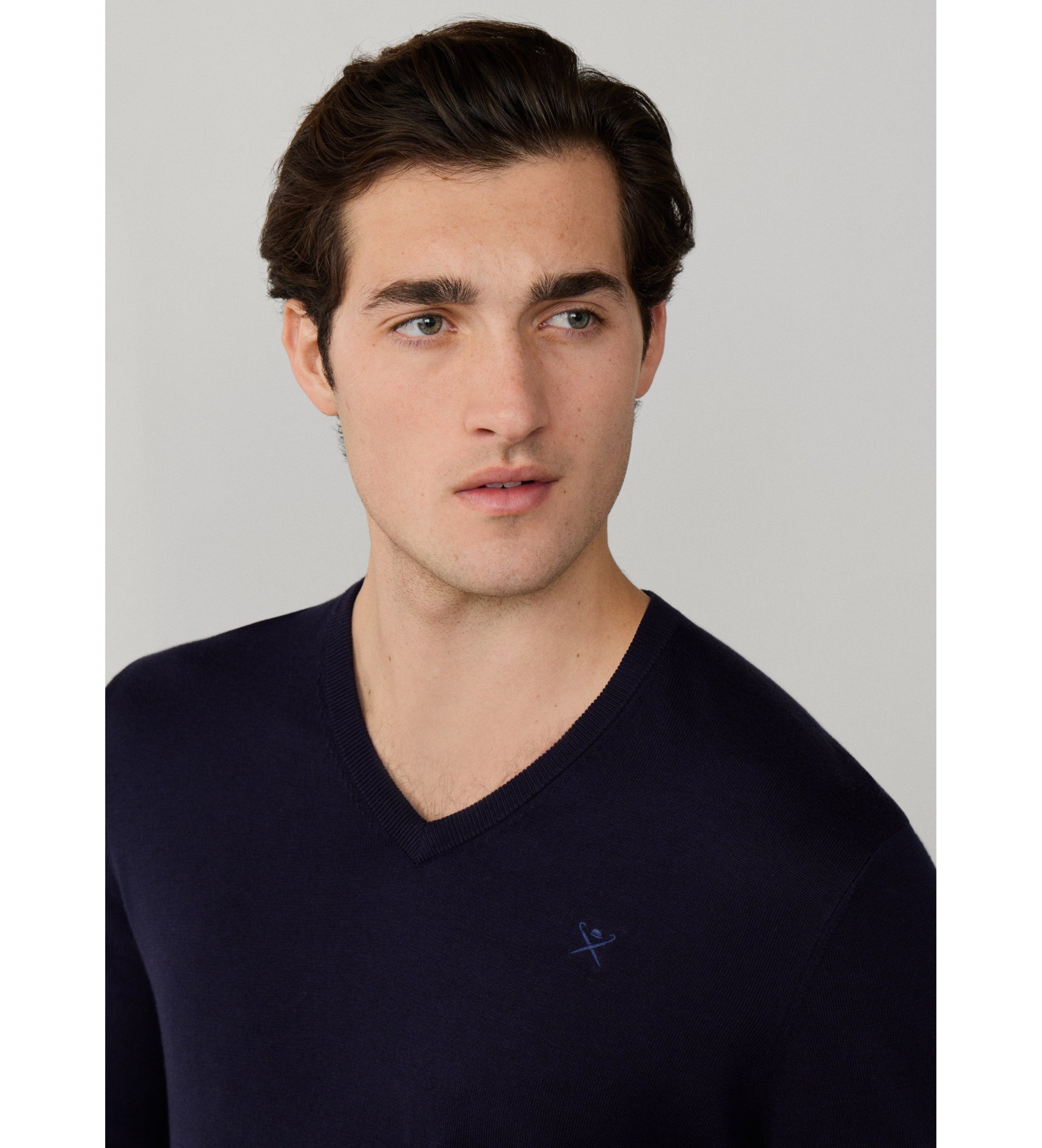 Hackett London JERSEY COTTON SILK V NECK MARINO