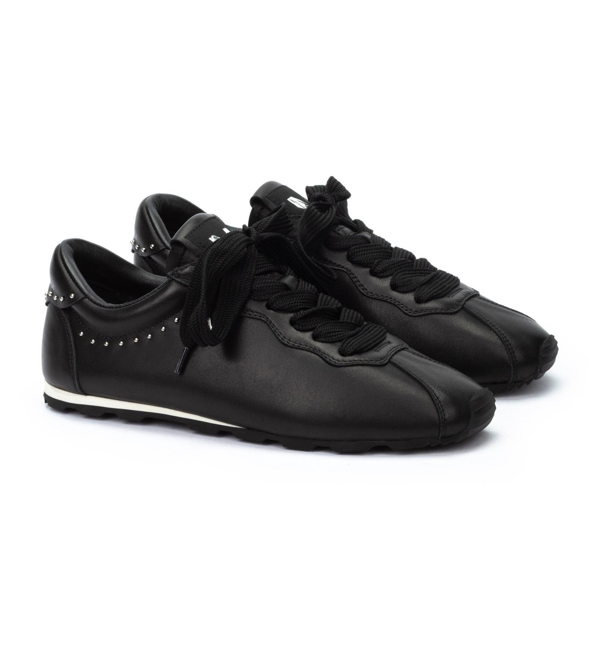 Deportivo Piemonte. Deportivo de piel con tachas y punta redonda; tacón plano de 2 cm. Exprime el día a día con New Elegance, elegancia actualizada y comodidad.