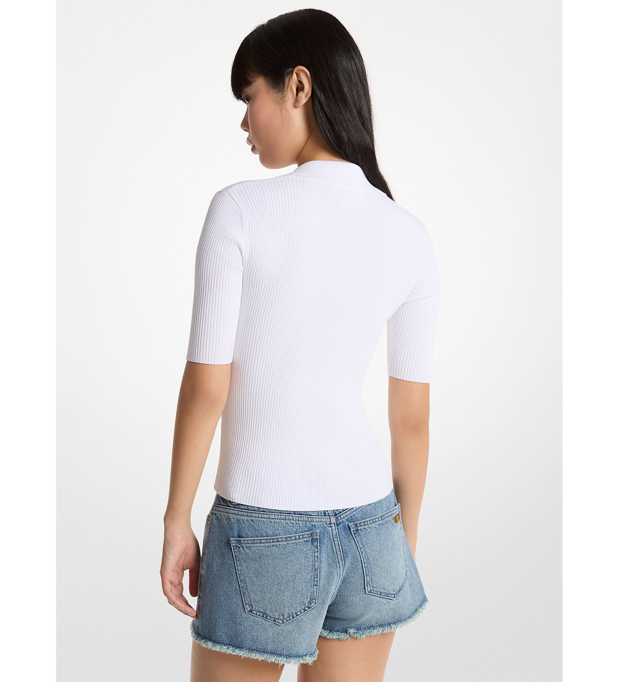 Este elegante polo se convertirá en uno de tus favoritos. Se ha confeccionado en viscosa elástica acanalada para conseguir un ajuste ceñido. Además, los cordones aportan al diseño un aire sofisticado con un encanto deportivo. Póntelo con vaqueros y mules de tacón bajo para una cena informal.